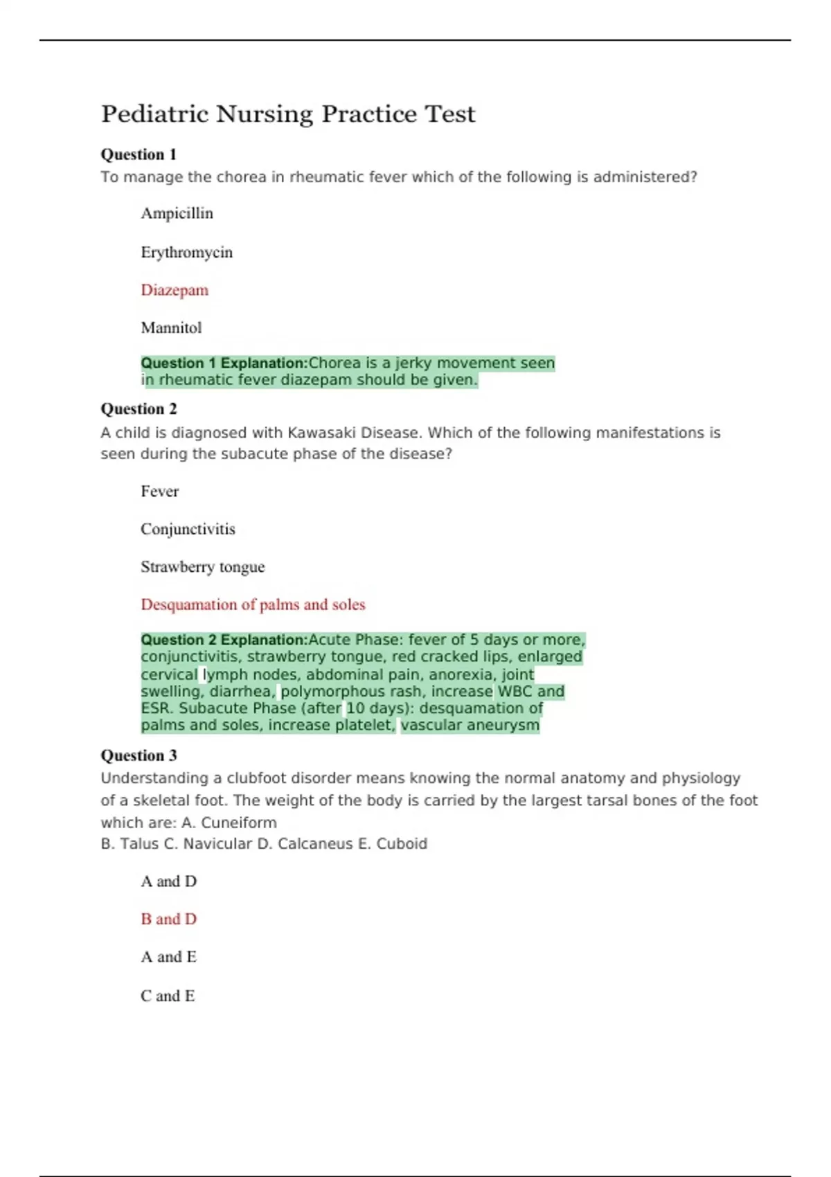 Pediatric Nursing Practice Test