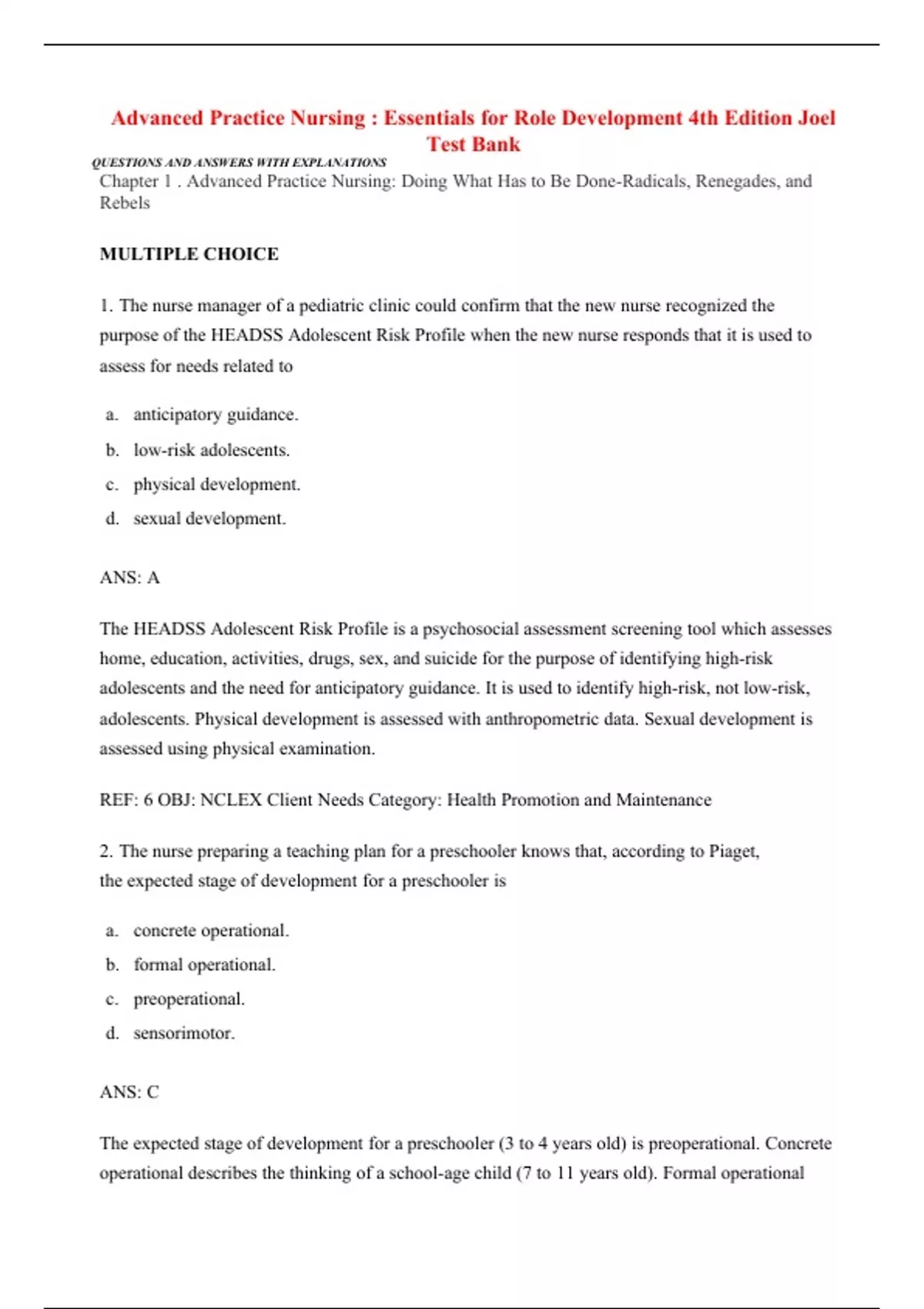 Advanced Practice Nursing : Essentials for Role Development 4th Edition Joel Test Bank