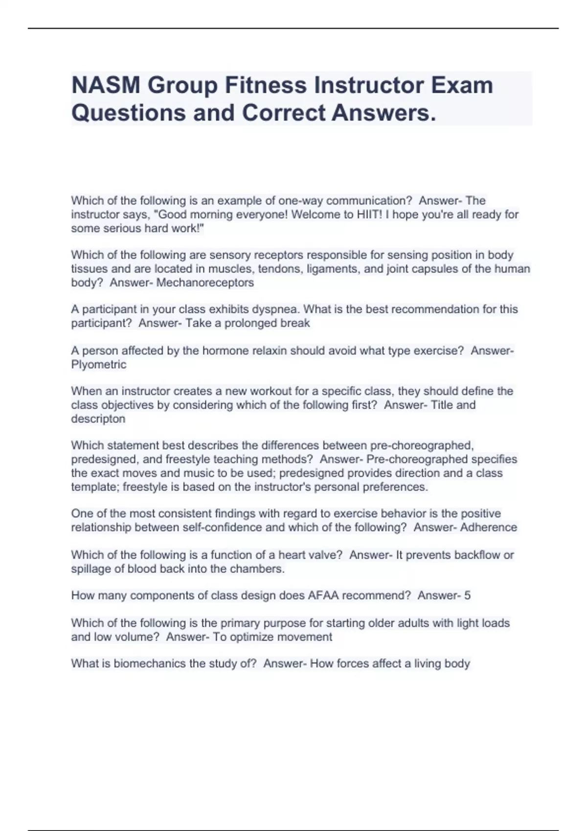 NASM Group Fitness Instructor Exam Questions and Correct Answers.