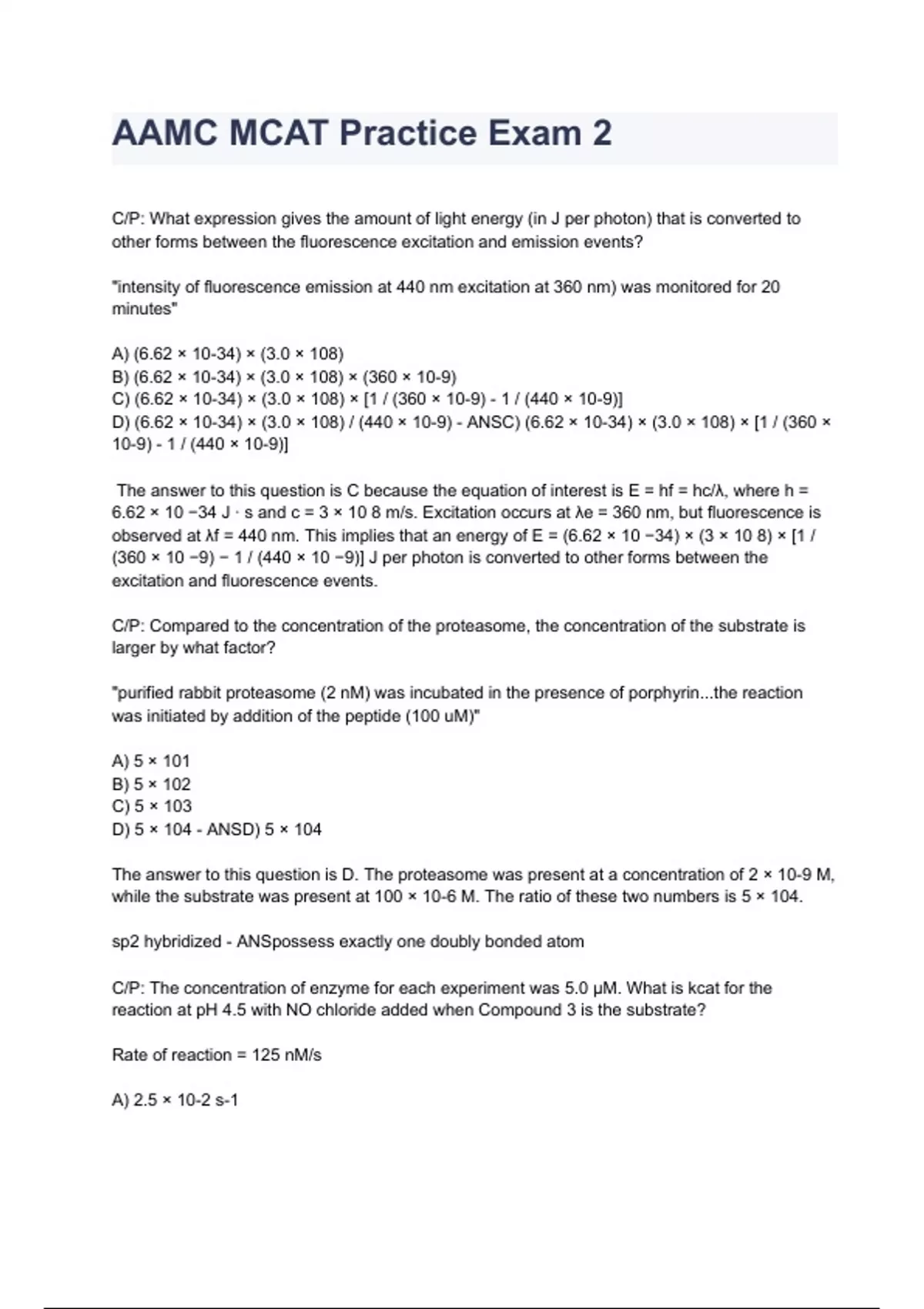 AAMC MCAT Practice Exam 2 graded A+ 100% verified