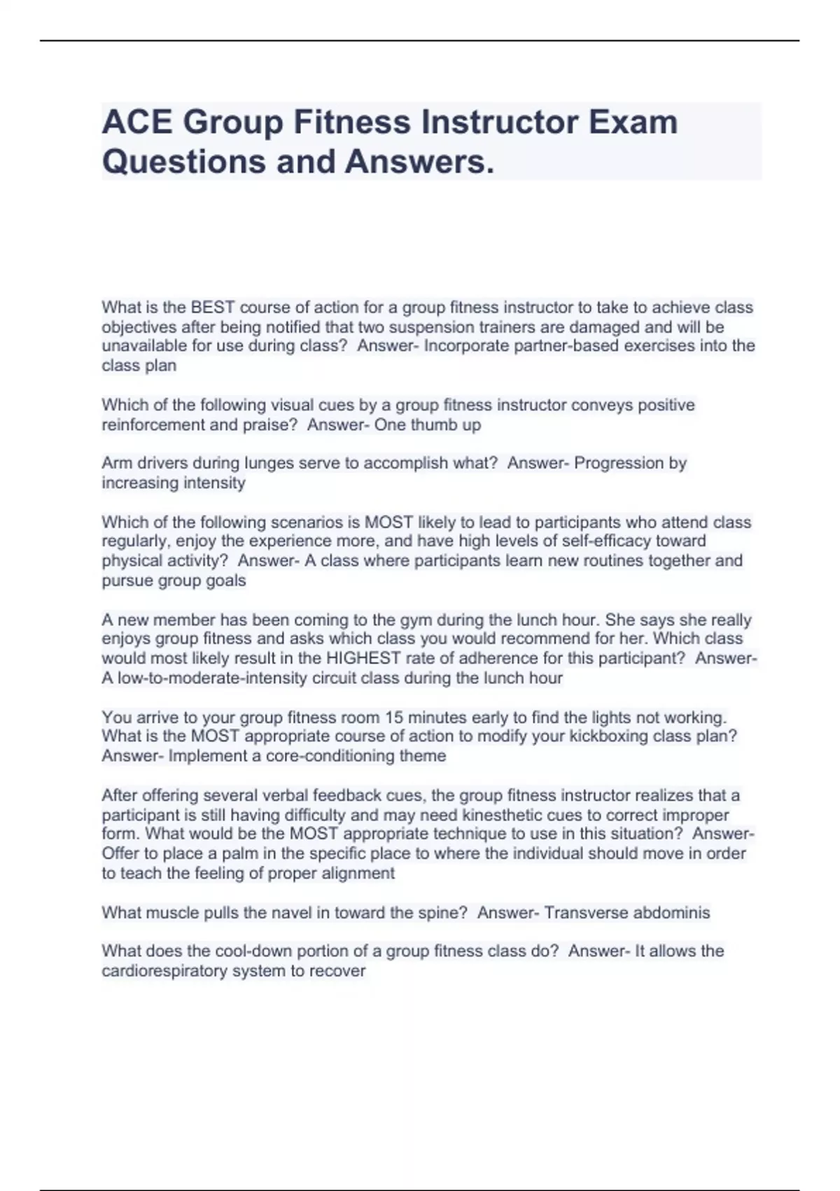ACE Group Fitness Instructor Exam Questions and Answers.