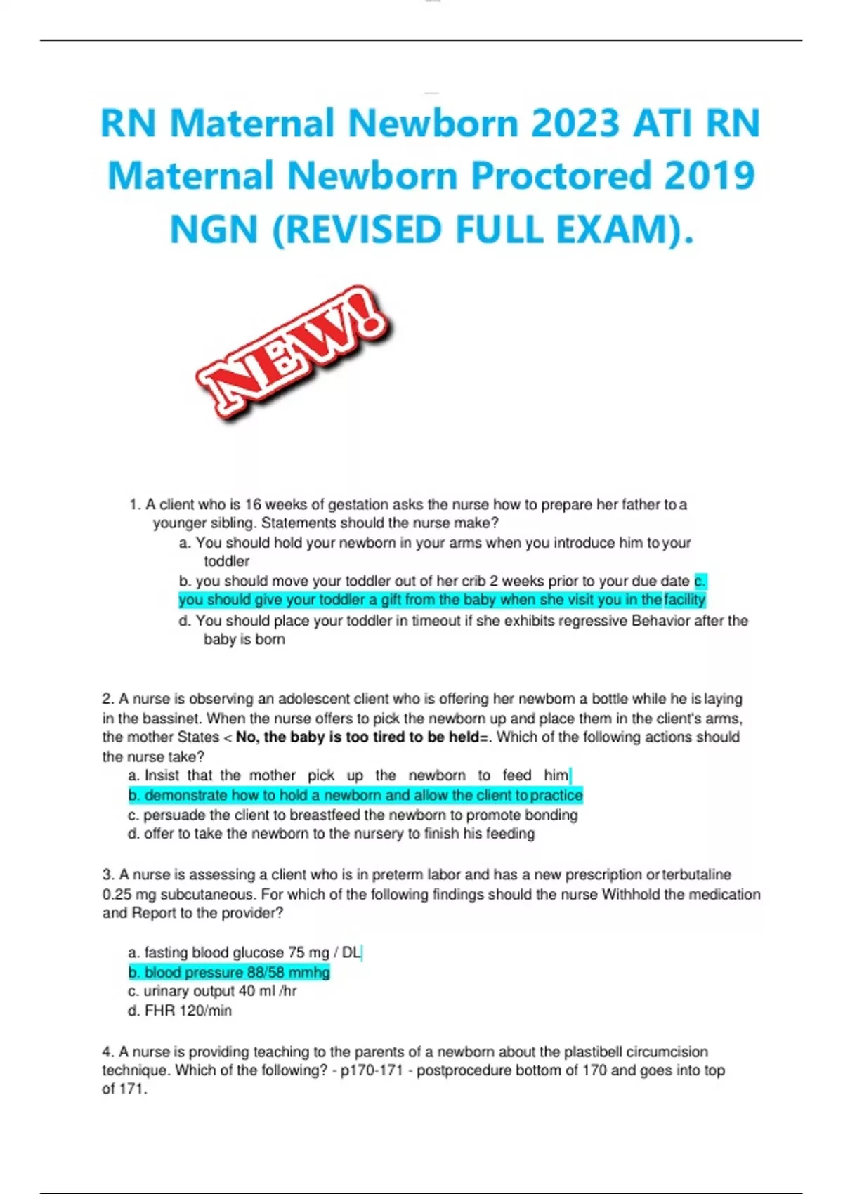 RN Maternal Newborn 2023 ATI RN Maternal Newborn Proctored 2019 NGN (REVISED FULL EXAM).