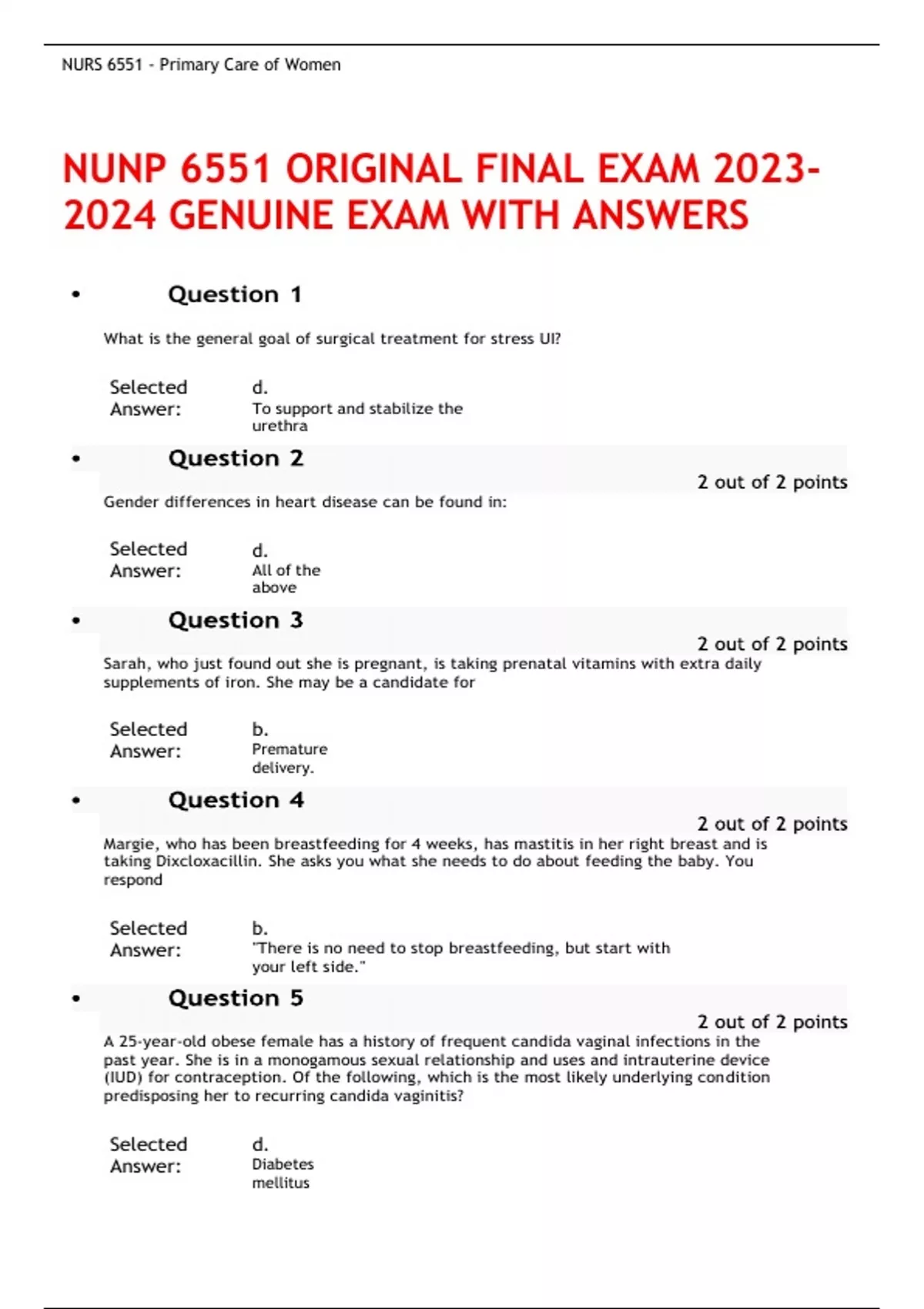 NUNP 6551 ORIGINAL FINAL EXAM GENUINE EXAM WITH ANSWERS