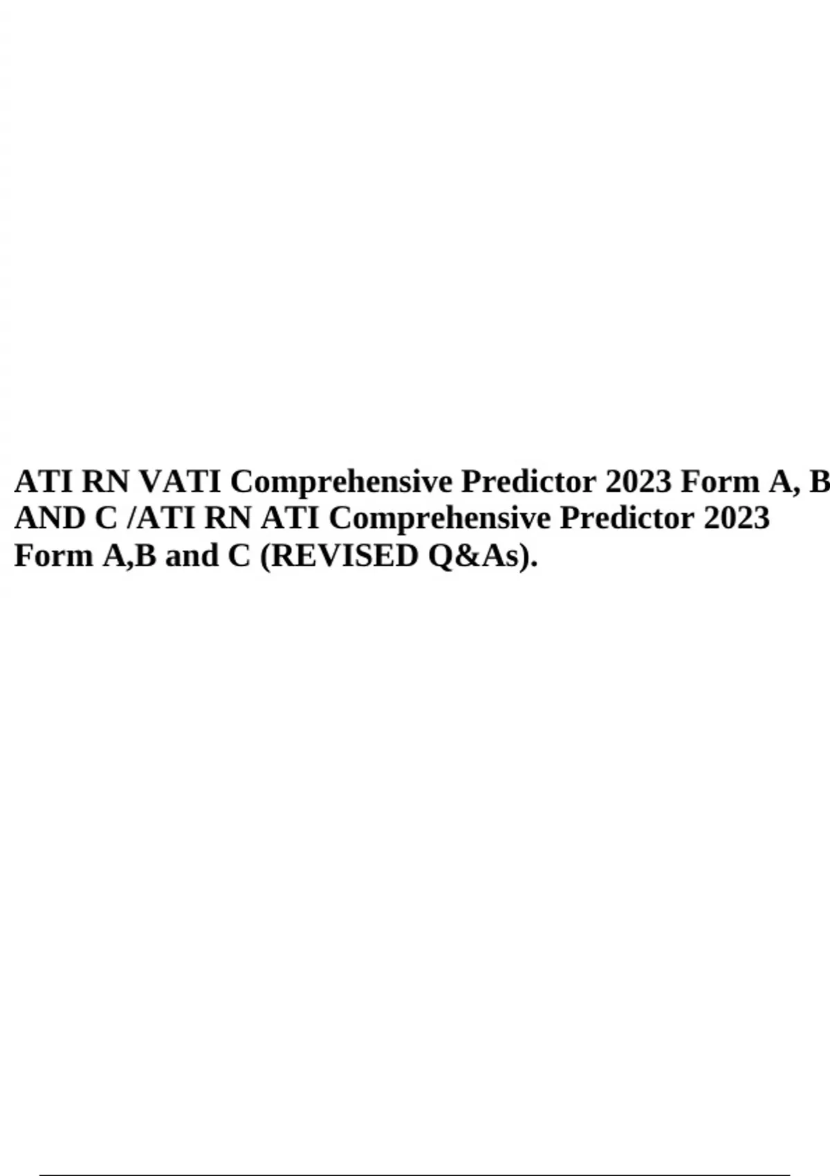 ATI RN VATI Comprehensive Predictor 2023 Form A, B AND C /ATI RN ATI Comprehensive Predictor 2023 Form A,B and C (REVISED Q&As).