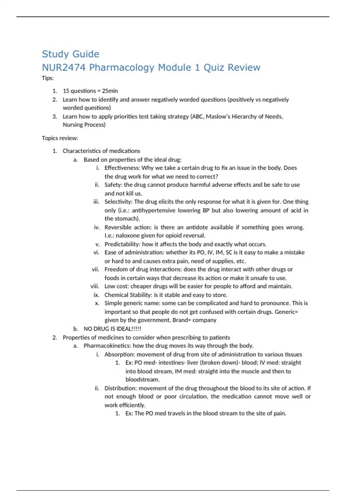 NUR2474 Pharmacology Modules Review