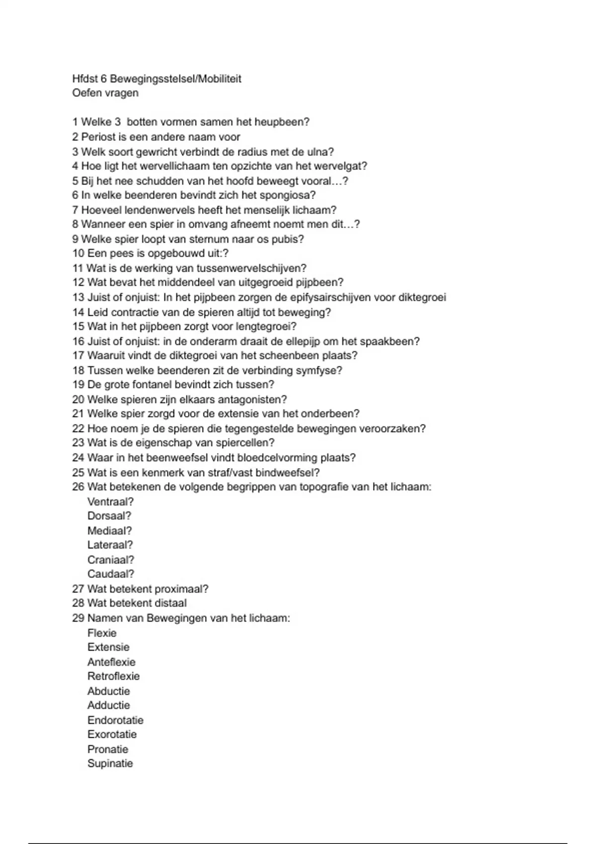 Deze oefenvragen zijn ideaal omdat ze kennis uit het hele hoofdstuk bevatten, ook de v ragen van anatomie online, goed om te leren voor het examen AFP!!!!