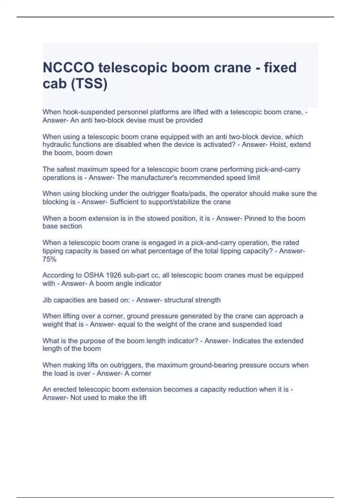 NCCCO telescopic boom crane - fixed cab (TSS) exam questions and answers