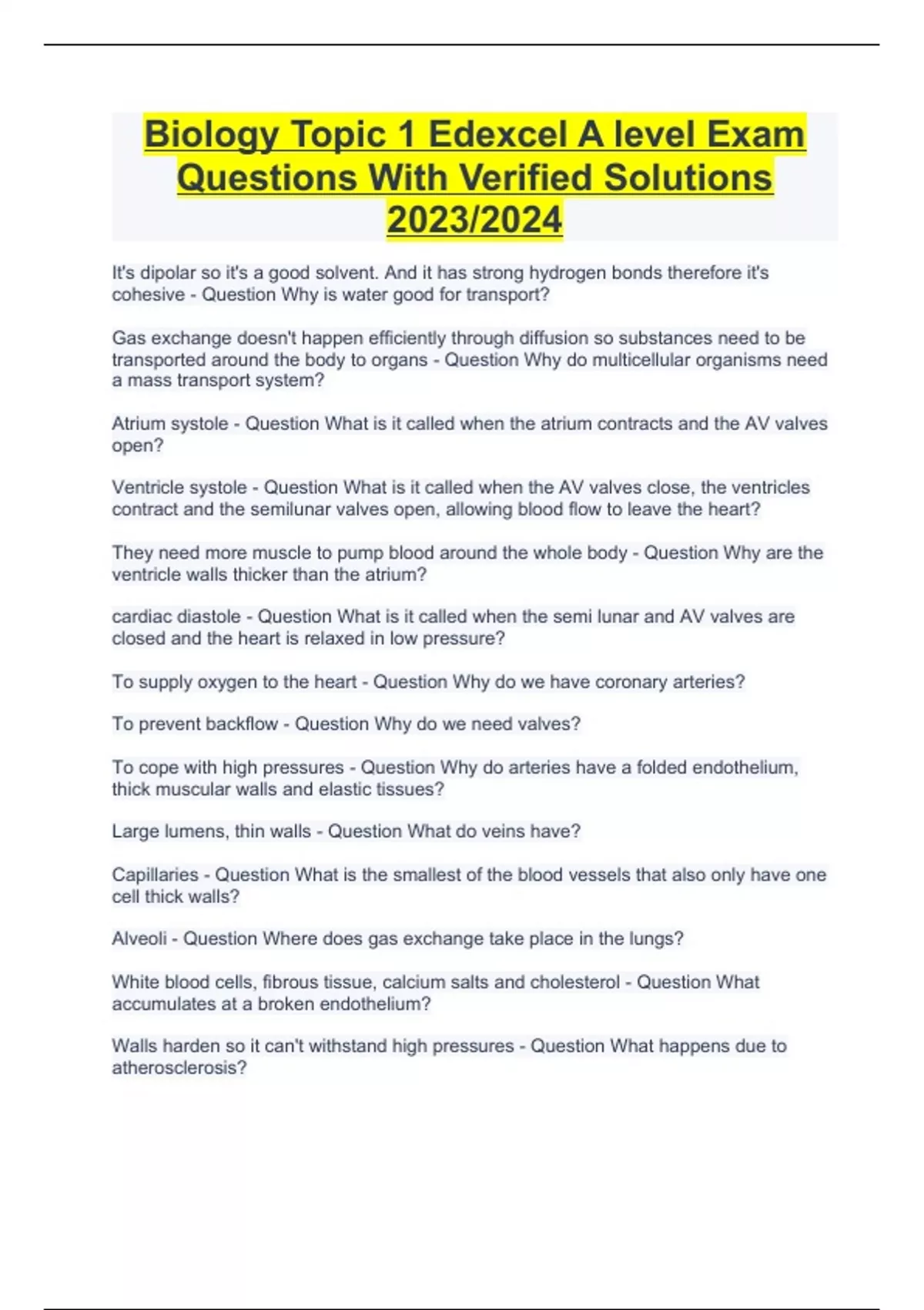 Biology Topic 1 Edexcel A level Exam Questions With Verified Solutions 2023/2024