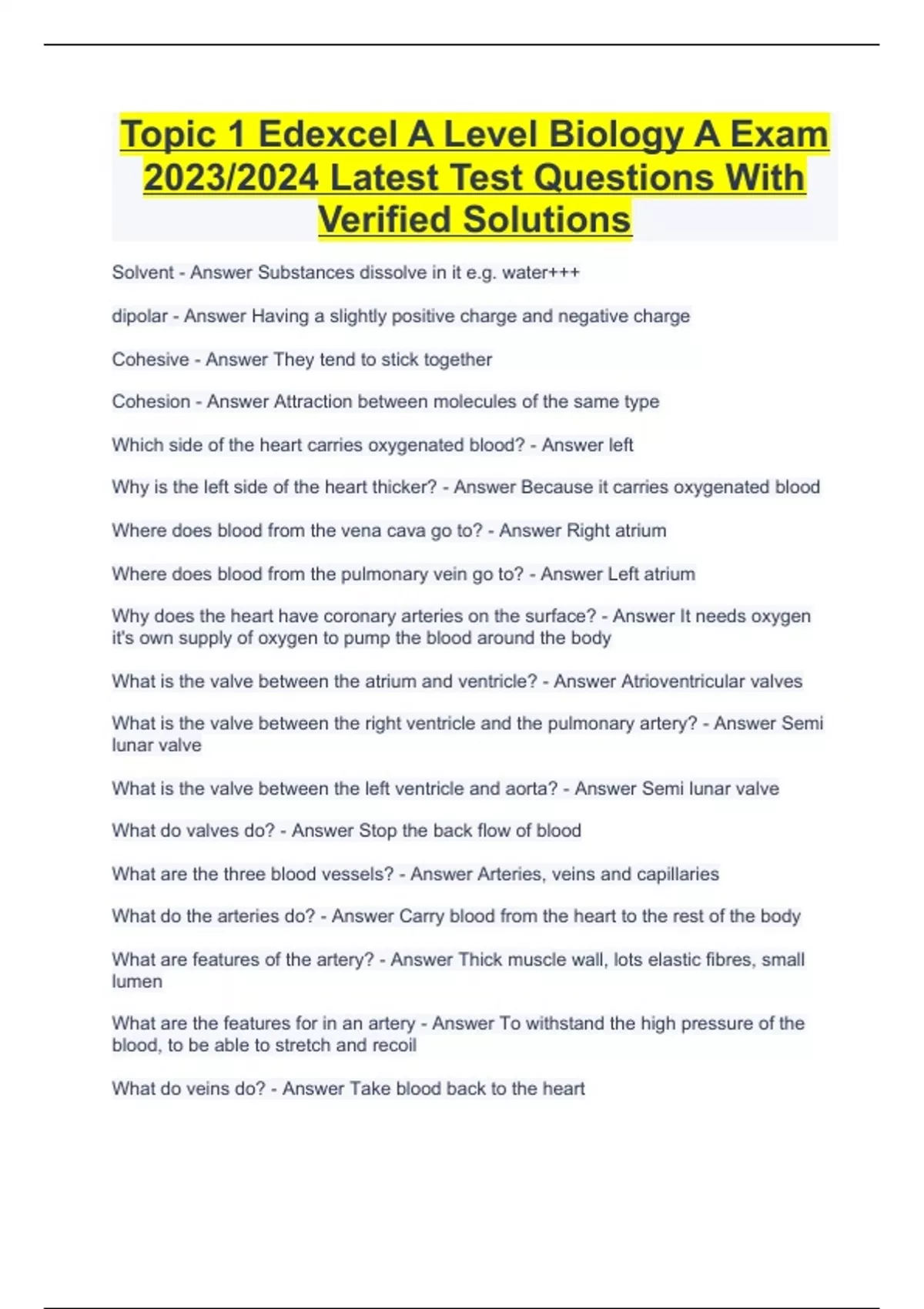 Topic 1 Edexcel A Level Biology A Exam 2023/2024 Latest Test Questions With Verified Solutions