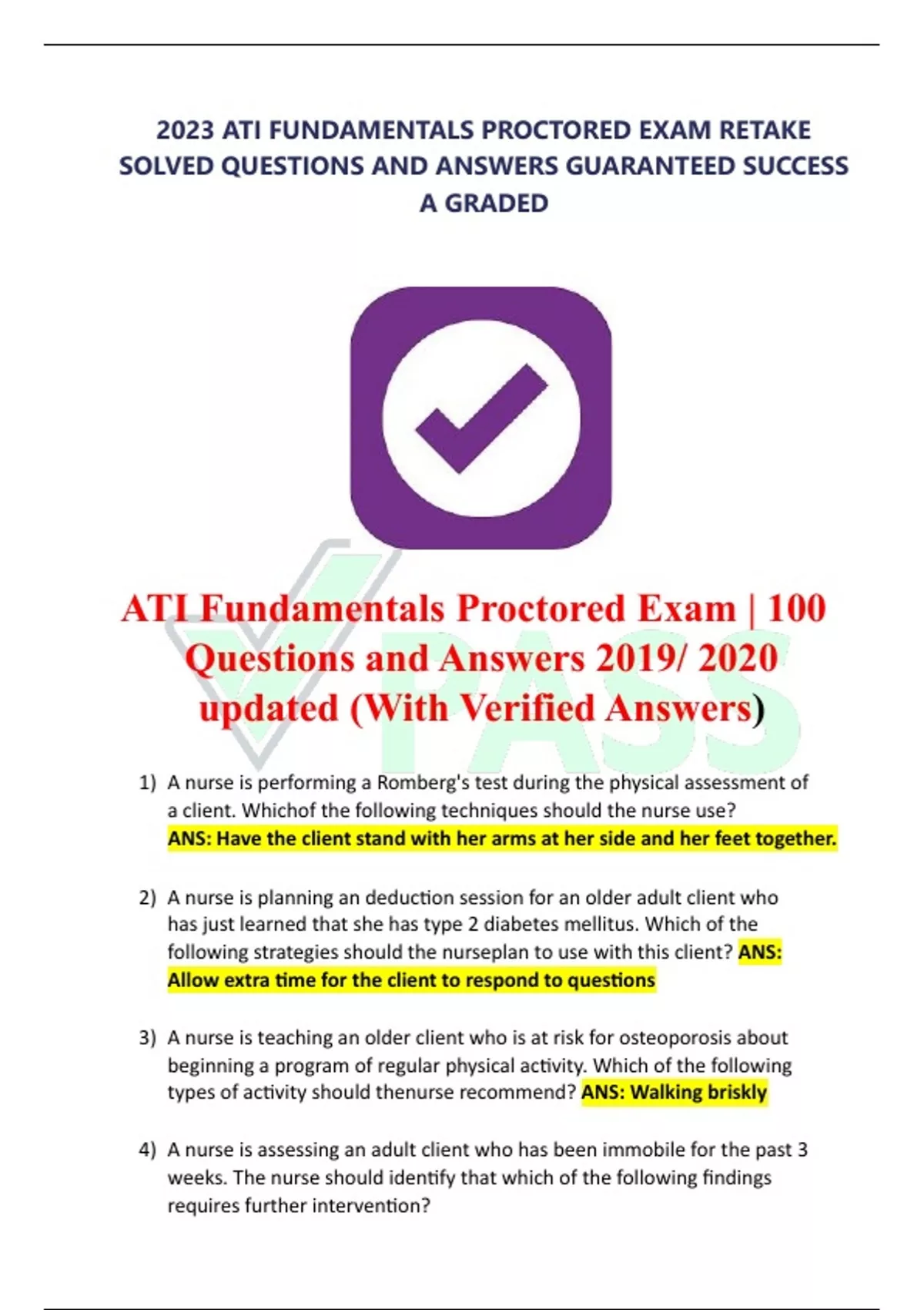 2023 ATI FUNDAMENTALS PROCTORED EXAM RETAKE SOLVED QUESTIONS AND ANSWERS GUARANTEED SUCCESS A GRADED