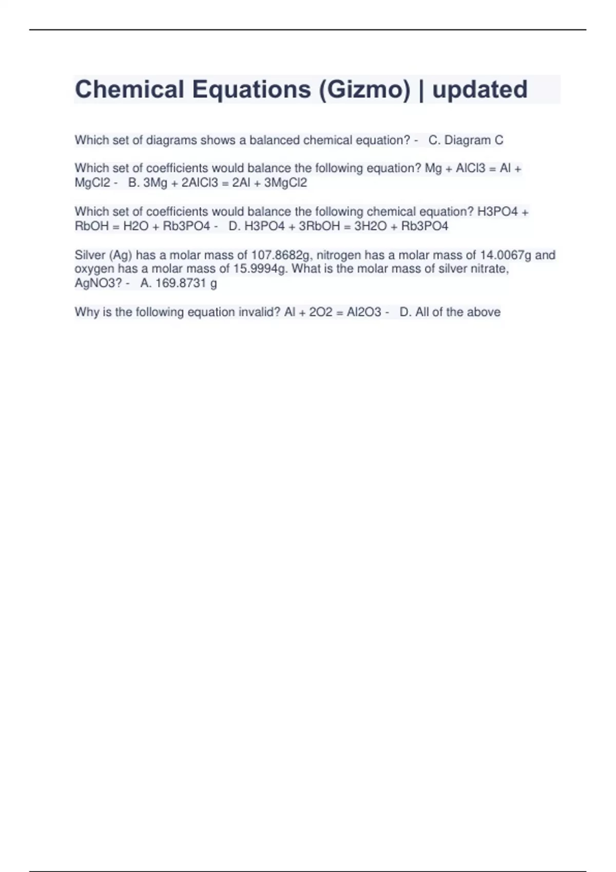 Chemical Equations (Gizmo) | updated