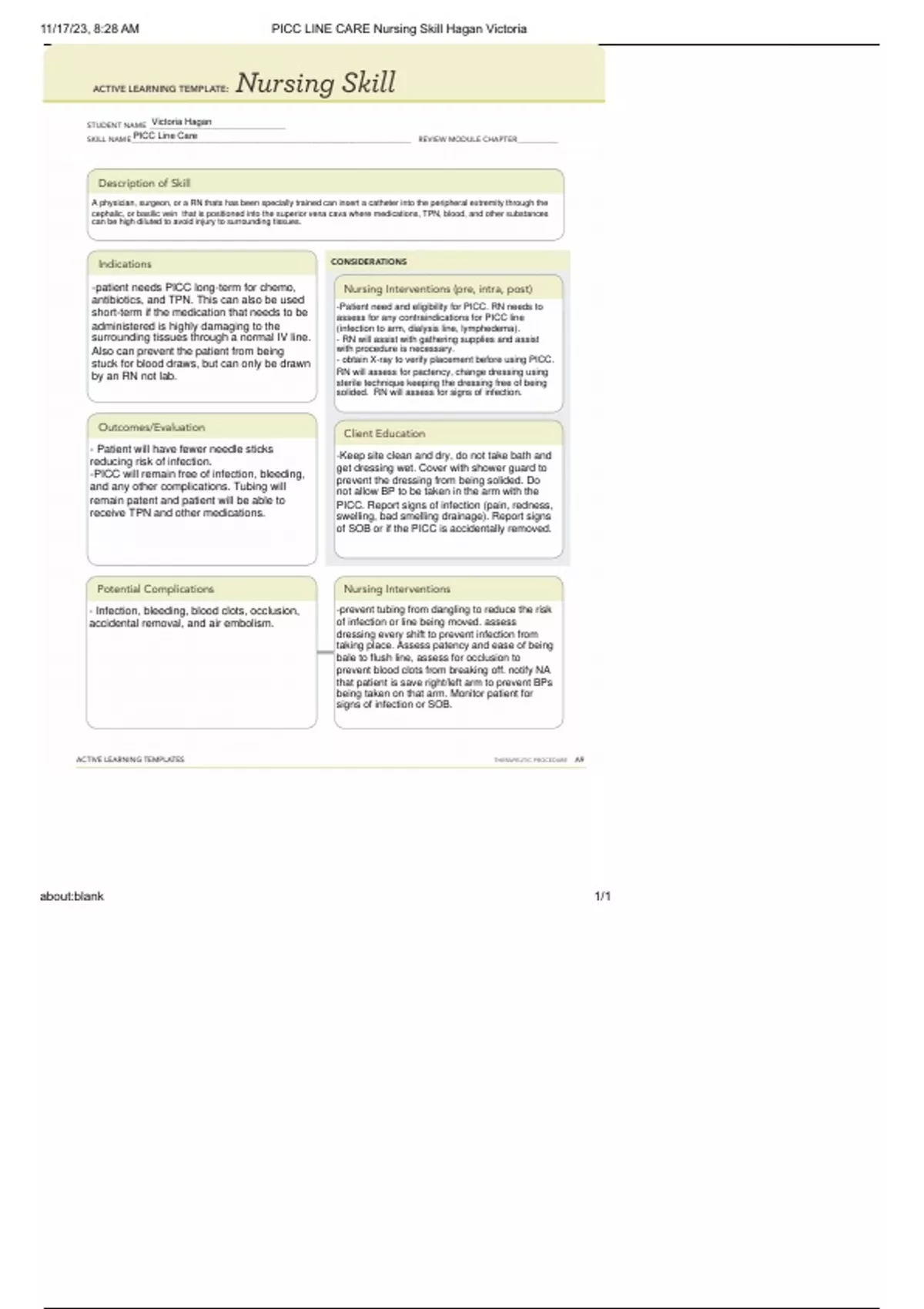 11/17/23, 8:28 AM PICC LINE CARE Nursing Skill Hagan Victoria