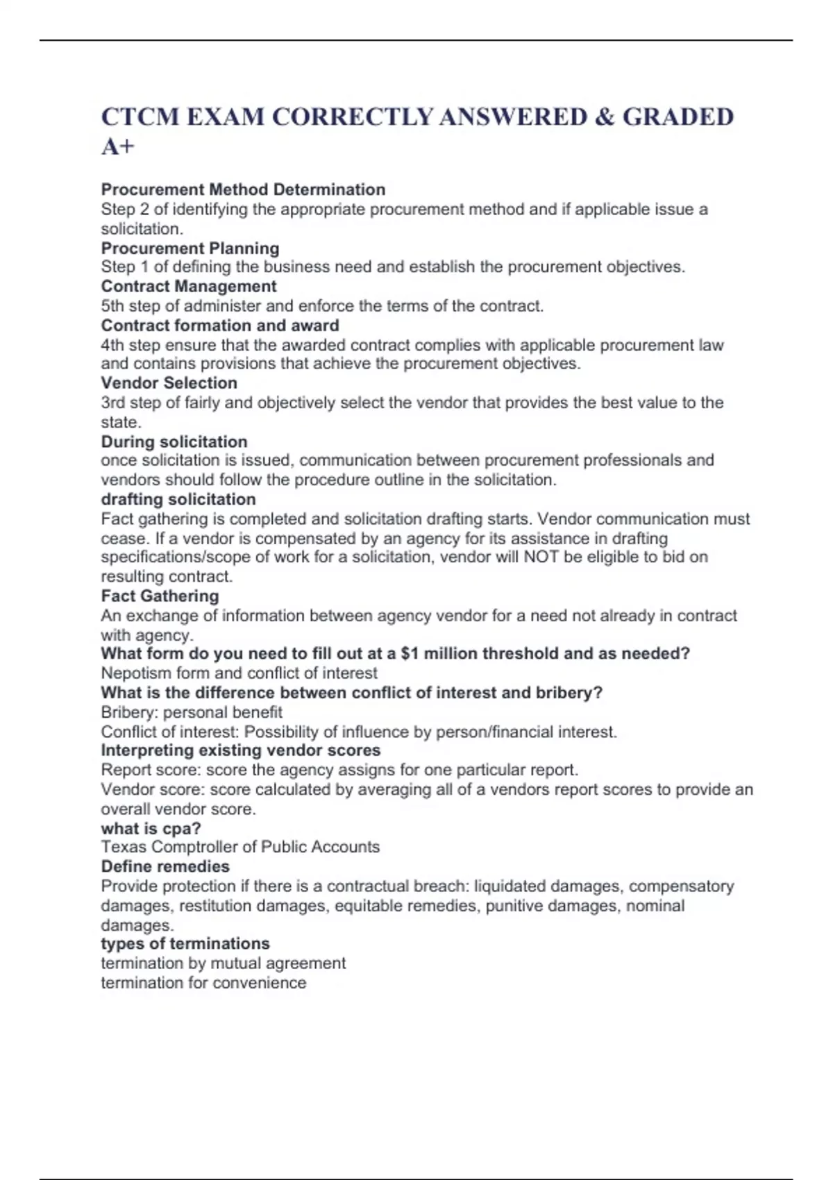 ctcm exam correctly answered graded a procurem