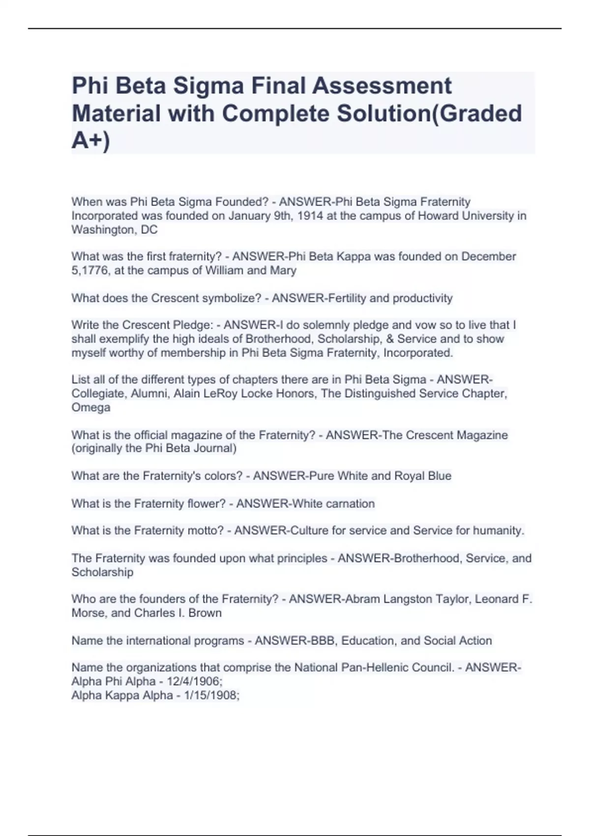Phi Beta Sigma Final Assessment Material with Complete Solution(Graded A+)