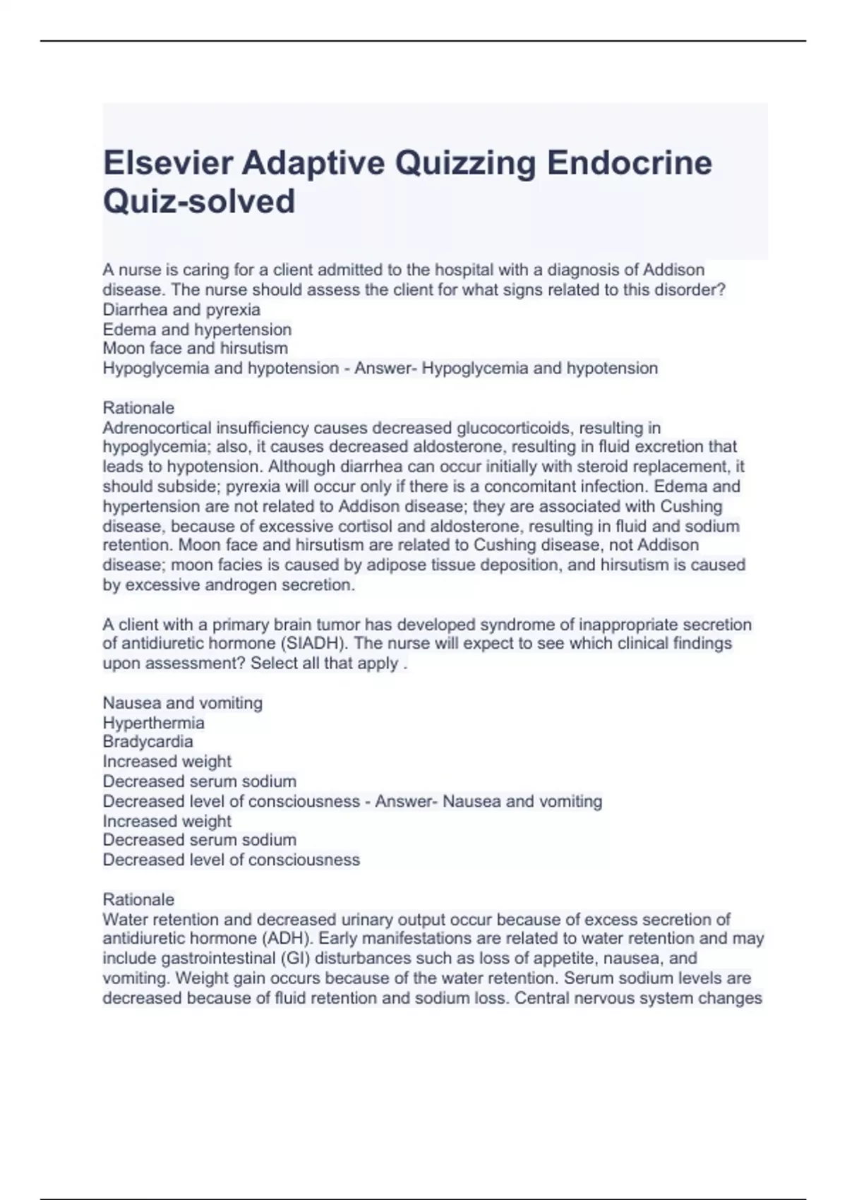 Elsevier Adaptive Quizzing Endocrine Quiz-solved
