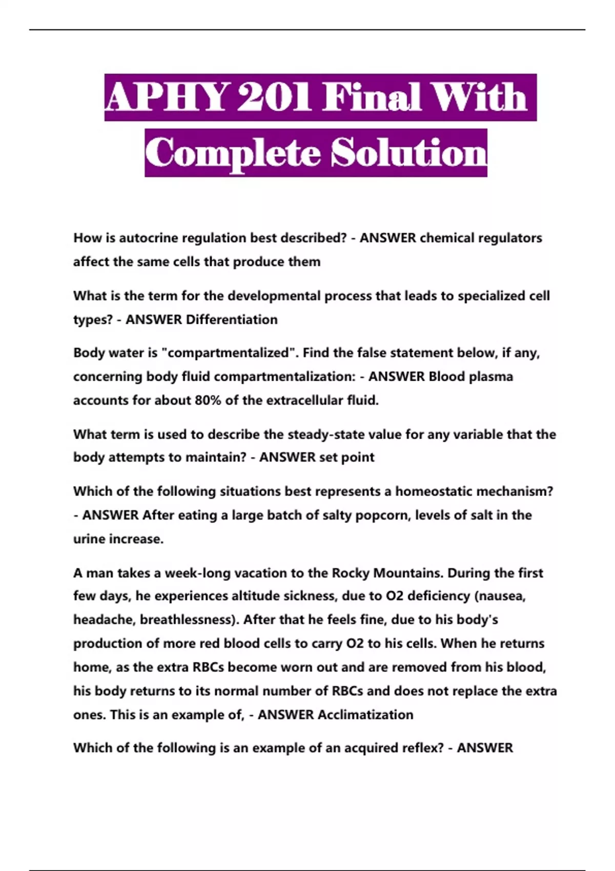 APHY 201 BUNDLED EXAMS WITH SOLUTION