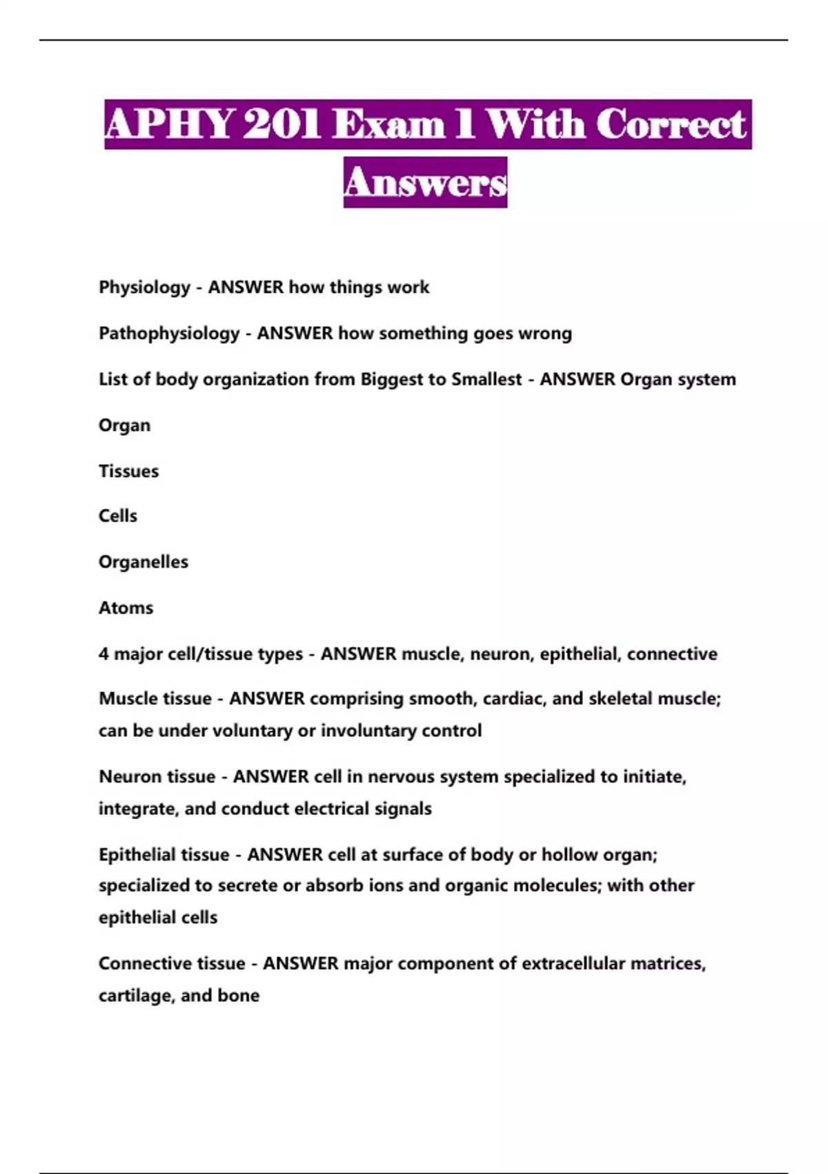 APHY 201 Exam 1 With Correct Answers...
