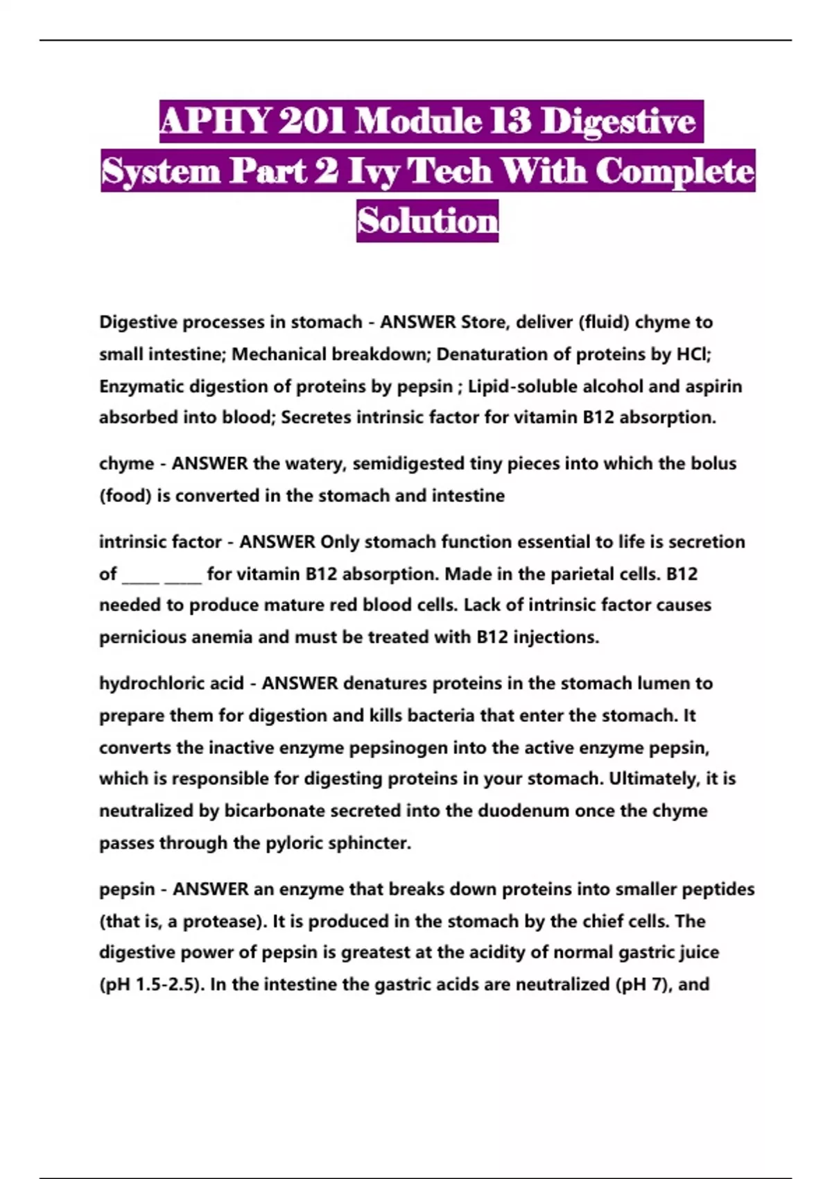 APHY 201 Module 13 Digestive System Part 2 Ivy Tech With Complete Solution...