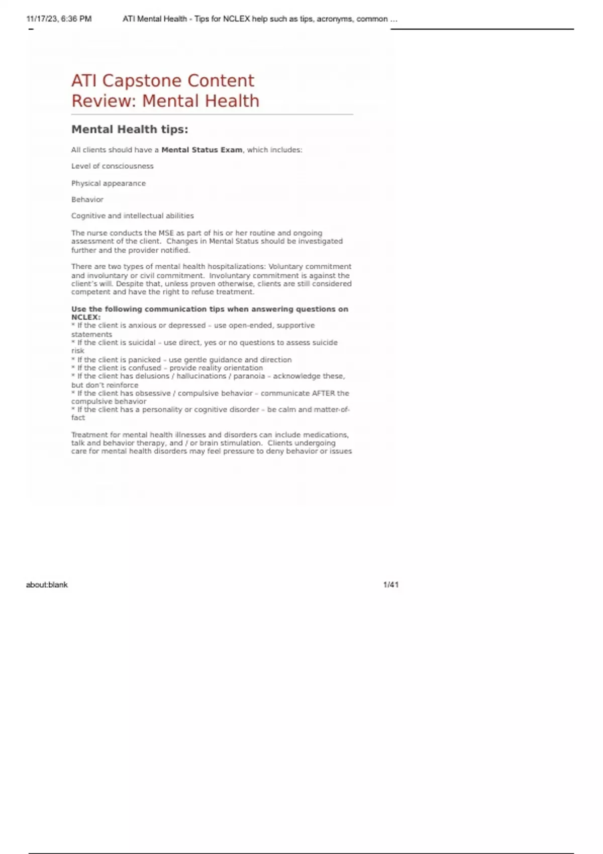 , 11/17/23, 6:36 PM ATI Mental Health - Tips for NCLEX help such as tips, acronyms, common …