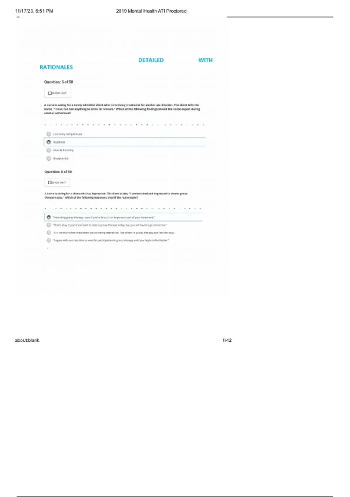 ,11/17/23, 6:51 PM 2019 Mental Health ATI Proctored