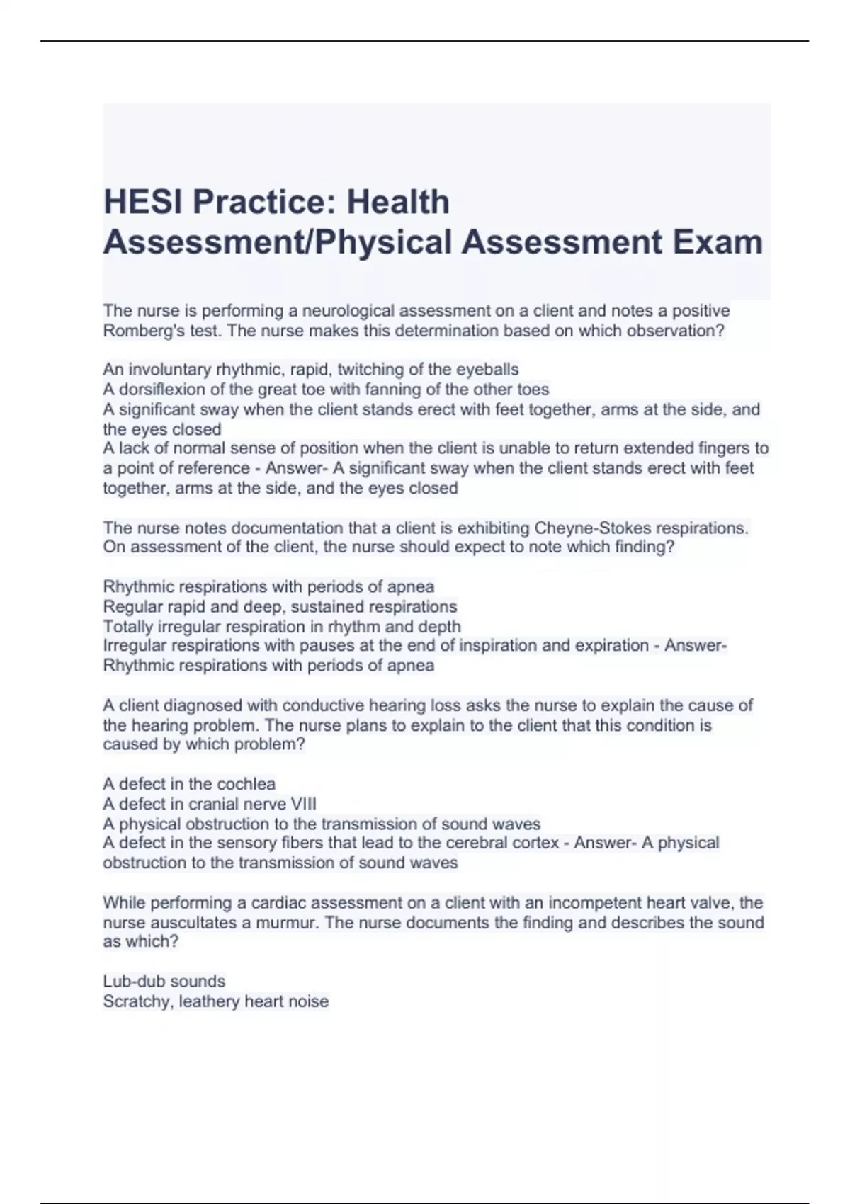 HESI Practice Health Assessment-Physical Assessment Exam