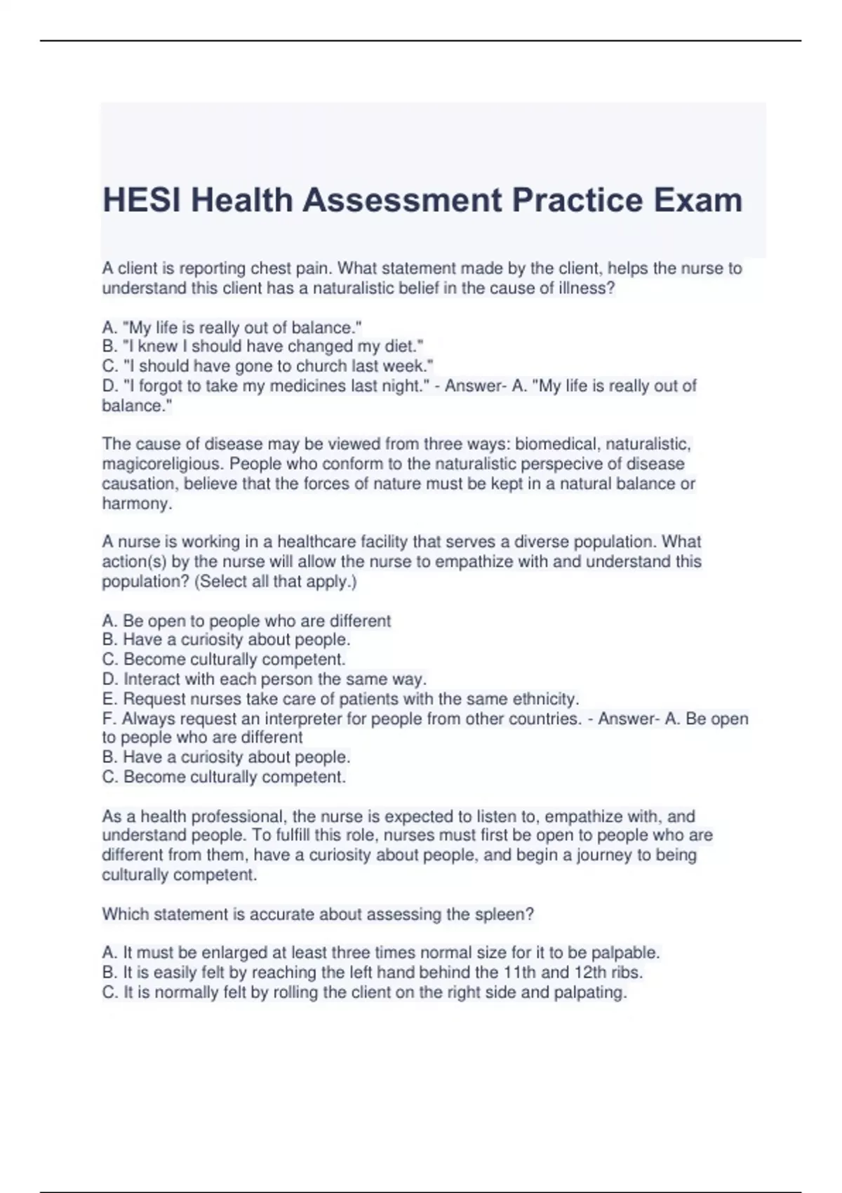 - HESI Health Assessment
