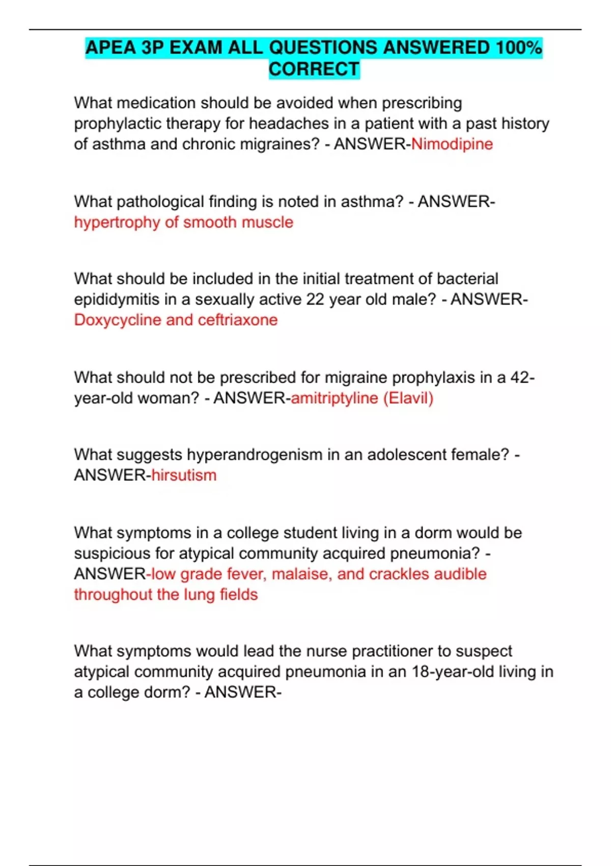 apea 3p exam all questions answered 100 correct