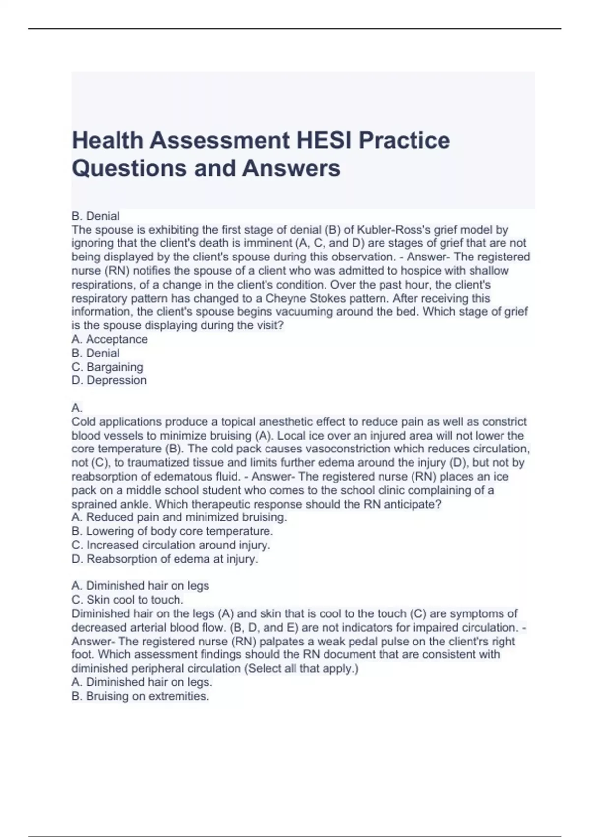 Health Assessment HESI Practice Questions and Answers