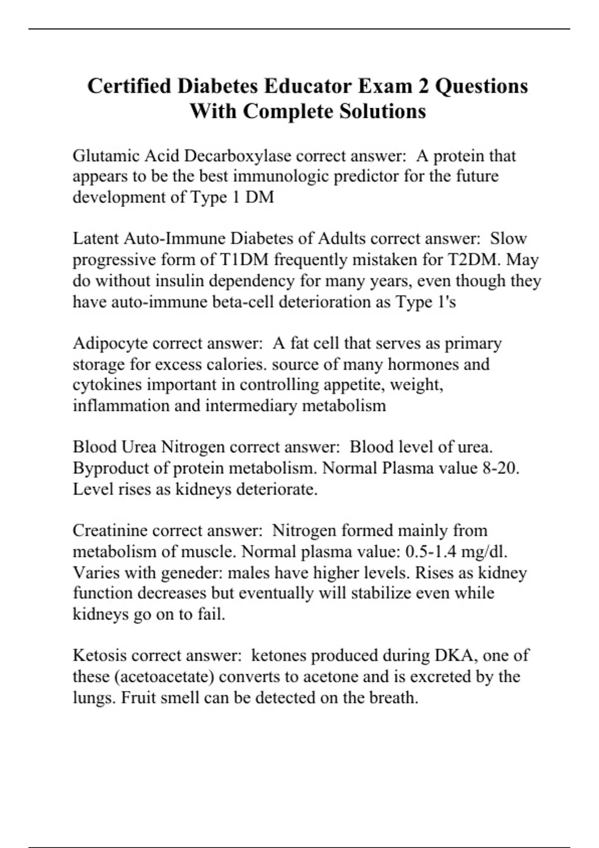 Certified Diabetes Educator Exam 2 Questions With Complete Solutions