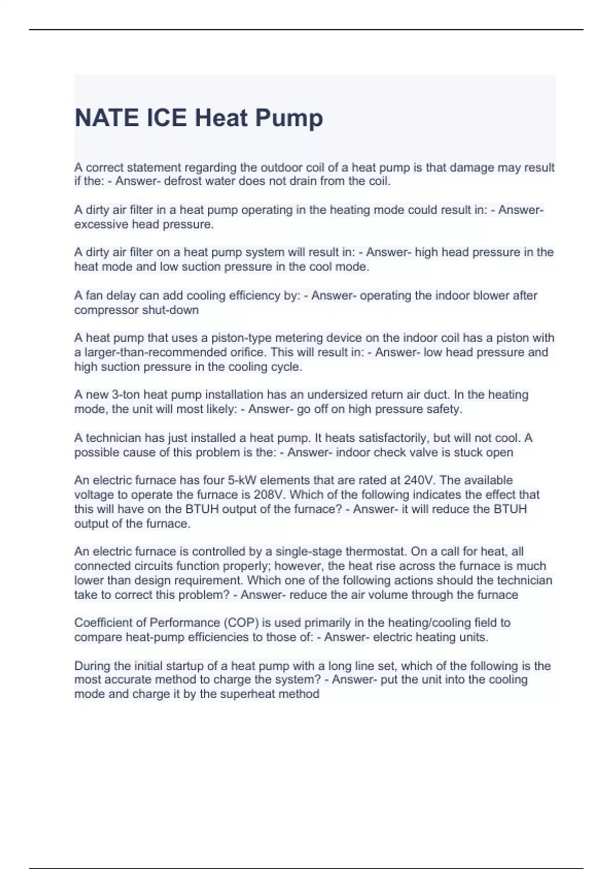 NATE ICE Heat Pump Exam with correct Answers
