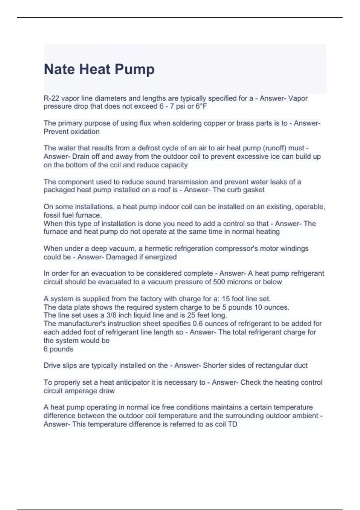 Nate Heat Pump Exam Questions with 100% correct Answers