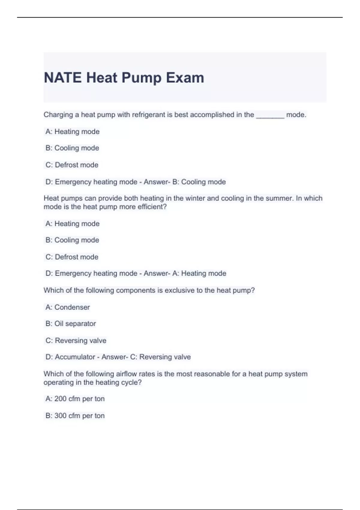 NATE Heat Pump Exam Questions and Answers
