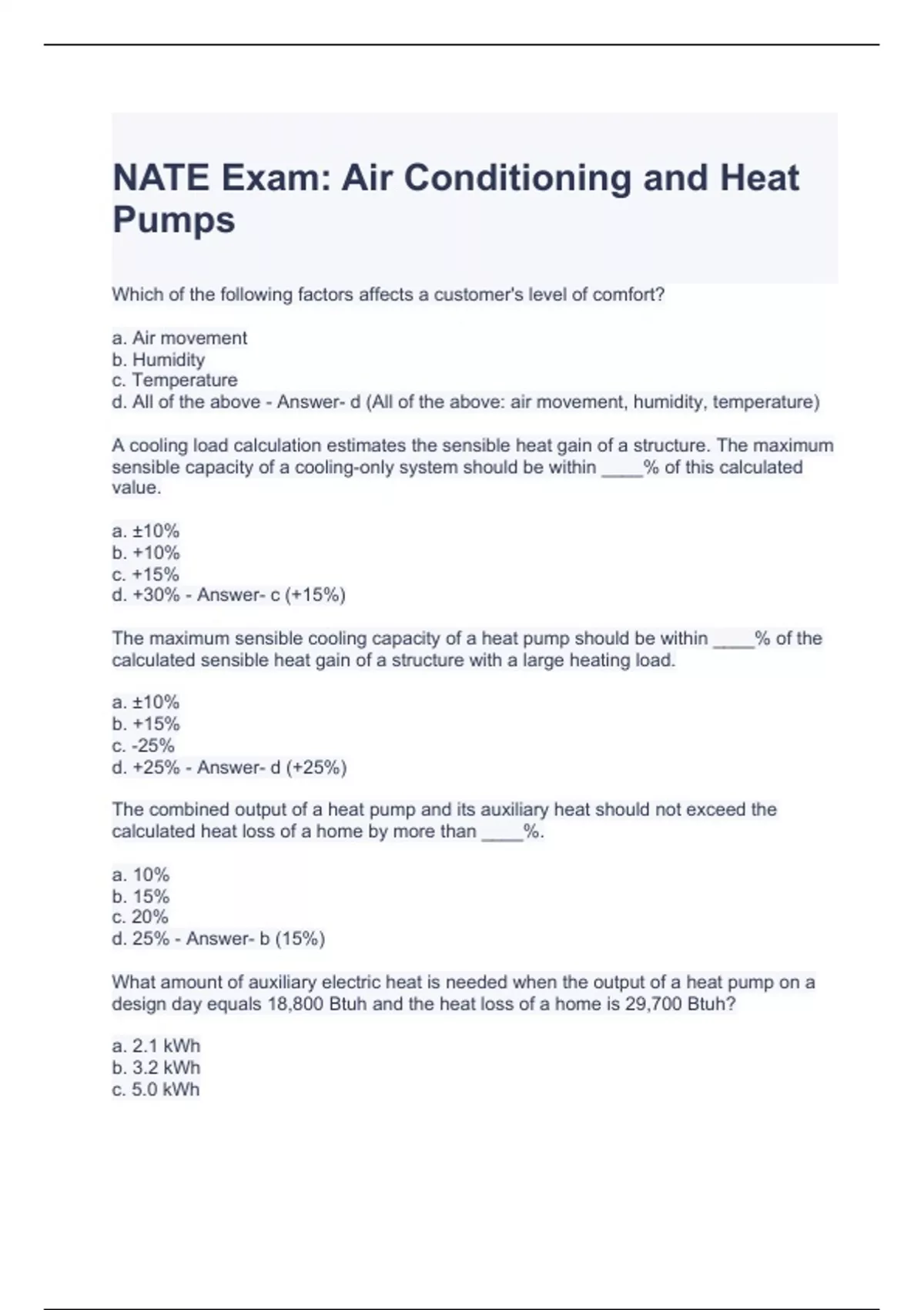 NATE Exam Air Conditioning and Heat Pumps Questions with correct Answers