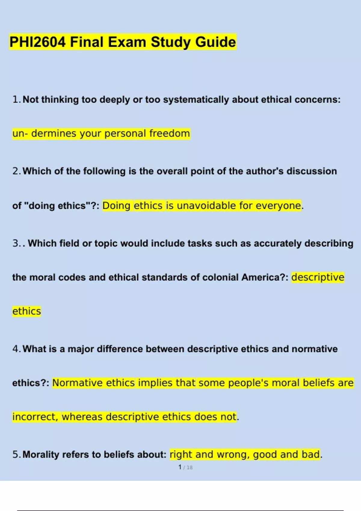 PHI 2604/ PHI2604 Proctored Final Exam_ Latest Miami Dade College, Miami