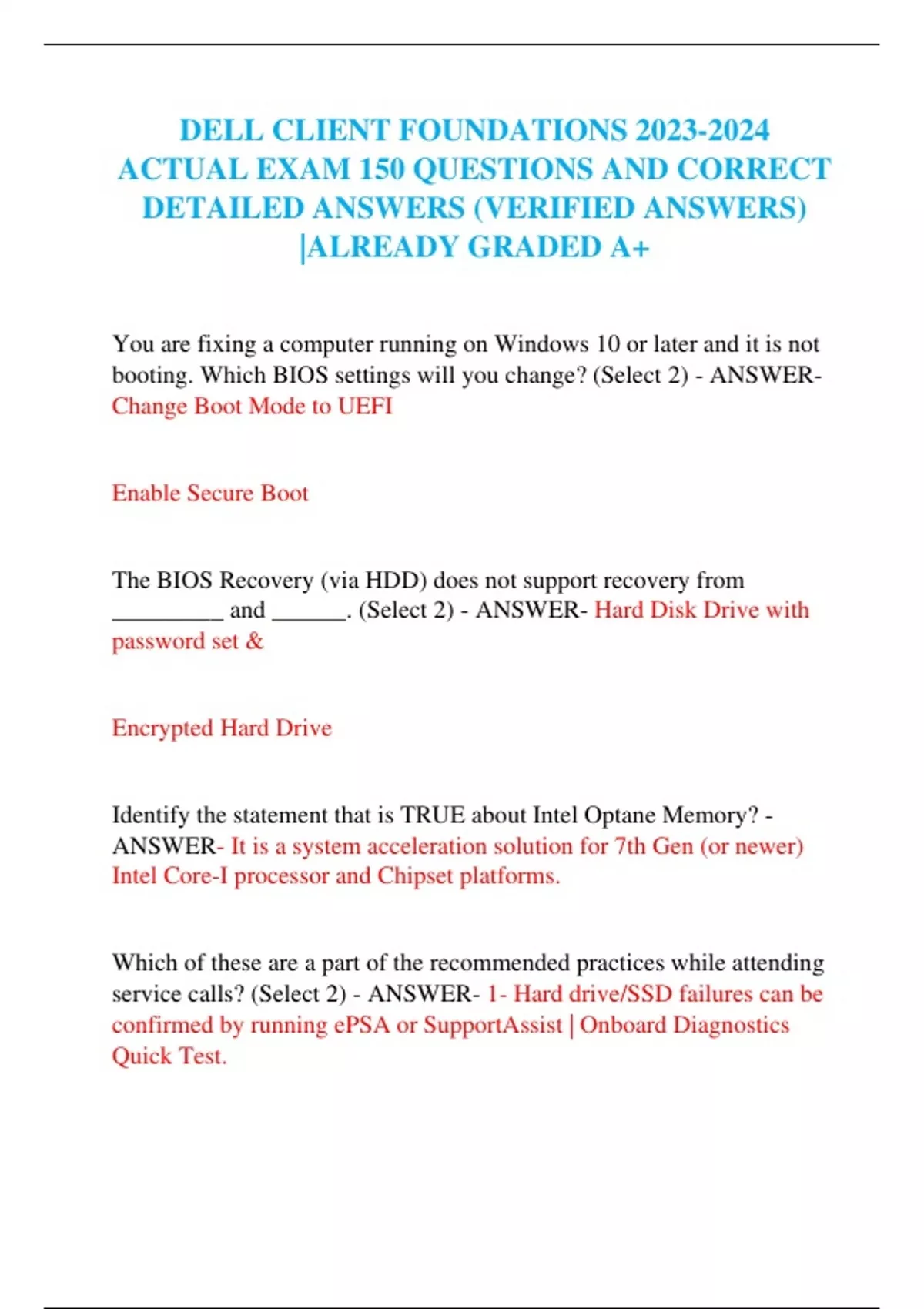 DELL CLIENT FOUNDATIONS ACTUAL EXAM 150 QUESTIONS AND CORRECT DETAILED ANSWERS (VERIFIED ANSWERS) |ALREADY GRADED A+