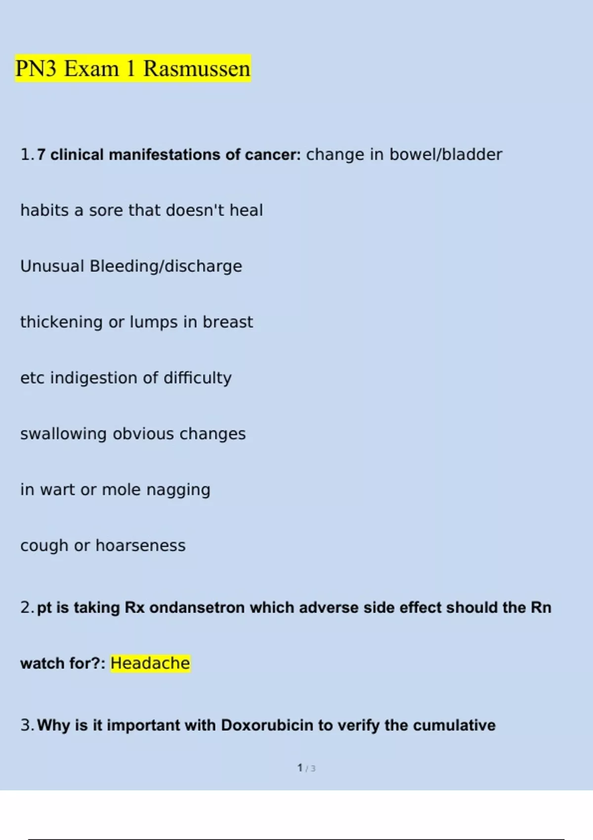 PN3 Exam 1 Rasmussen Latest (2024/2025) Newest Questions and Answers (Verified Answers)