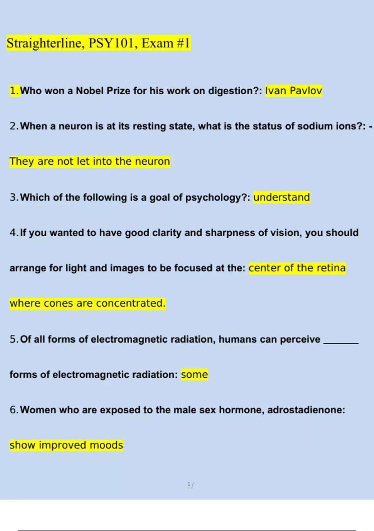 Straighterline, PSY101, Exam #1.docx