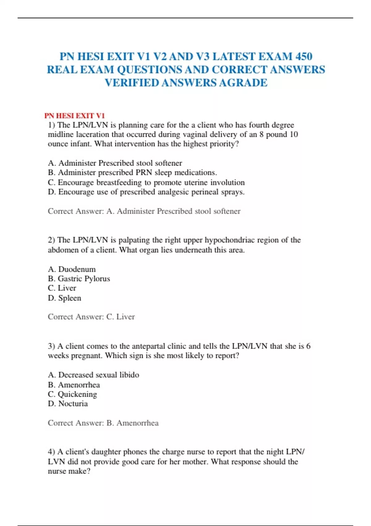 PN HESI EXIT V1 V2 AND V3 LATEST EXAM 450 REAL EXAM QUESTIONS AND CORRECT ANSWERS