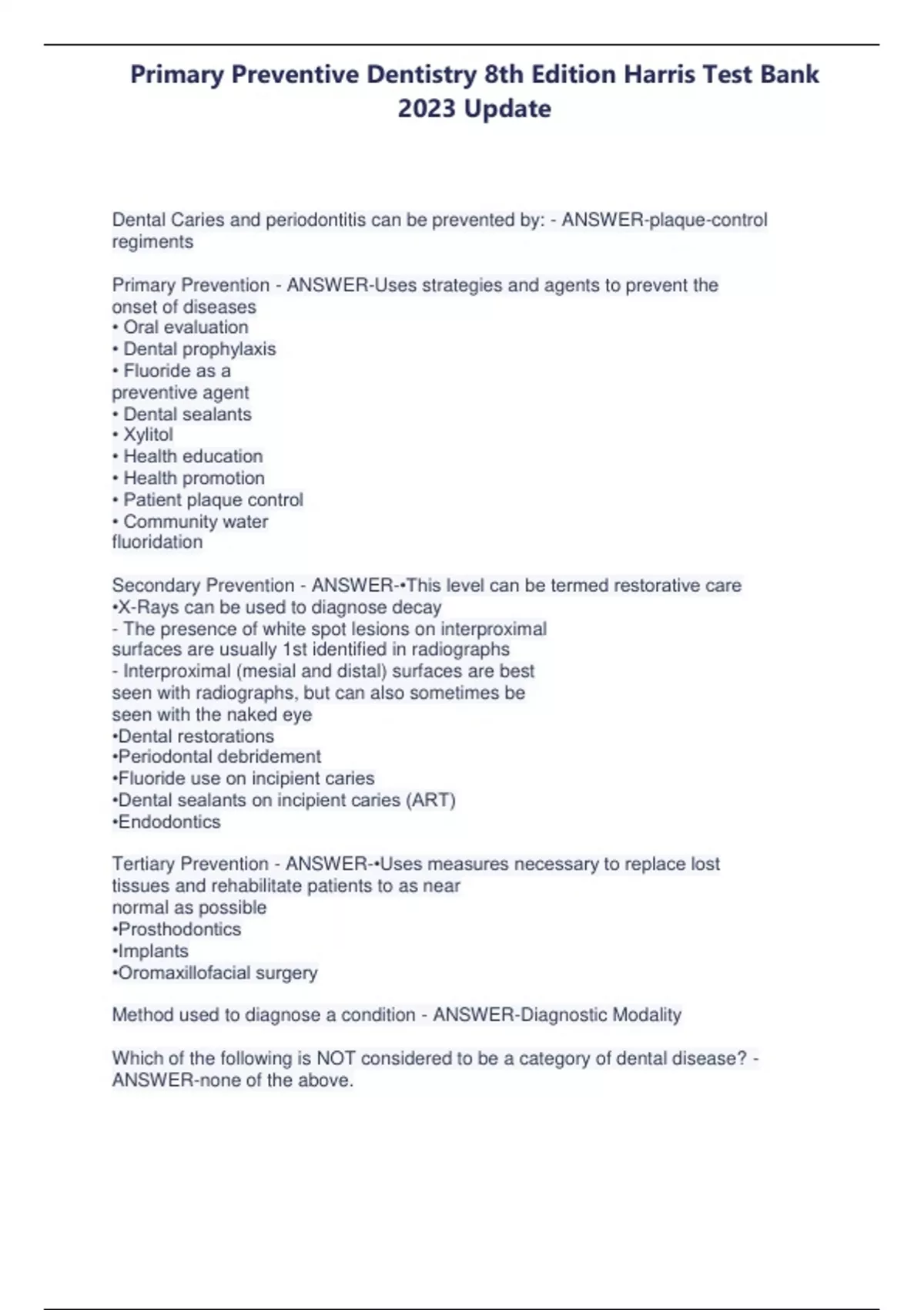 Primary Preventive Dentistry 8th Edition Harris Test Bank 2023 Update Primary Preventive Dentistry 8th Edition Harris Test Bank 2023 Update Primary Preventive Dentistry 8th Edition Harris Test Bank 2023 Update