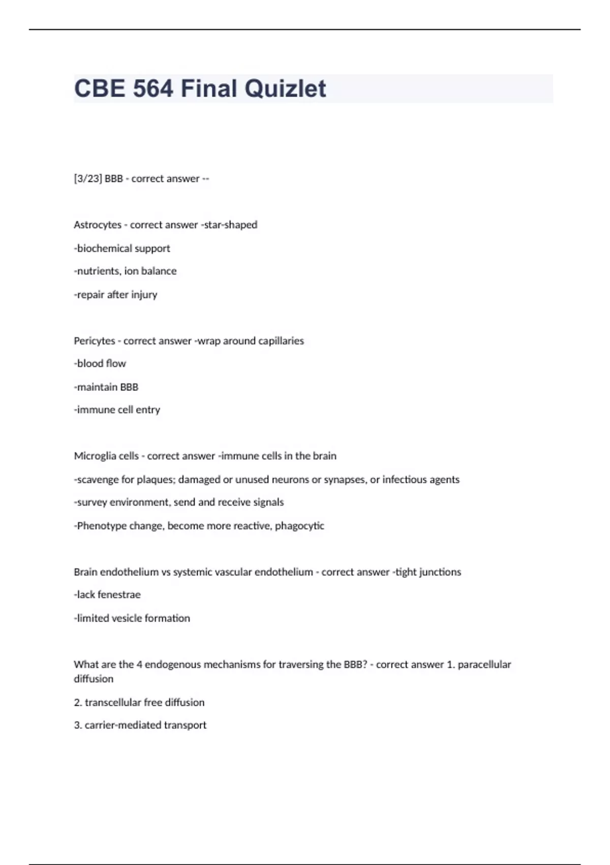 CBE 564 Final Quizlet 2023/2024 verified to pass