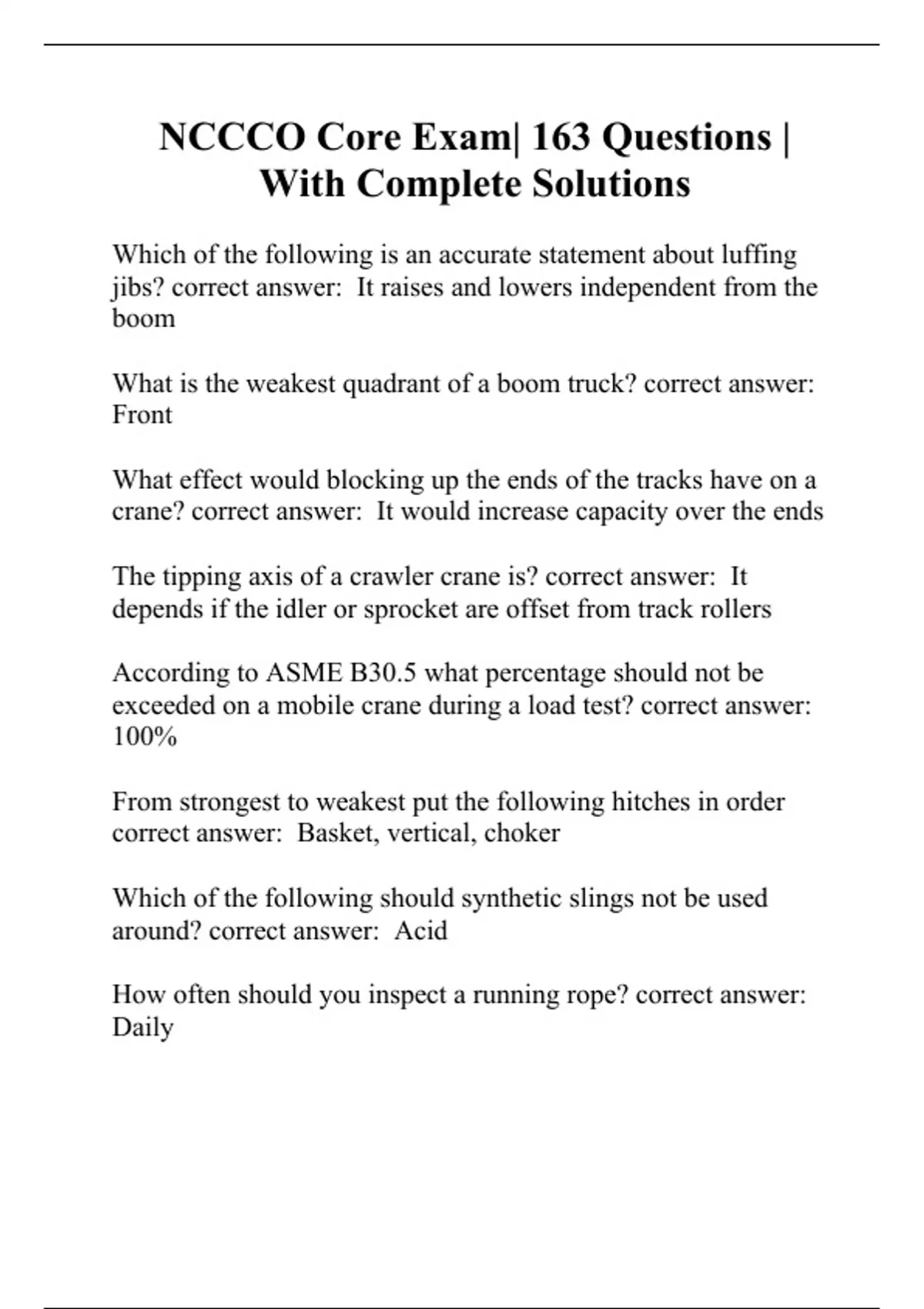 NCCCO Core Exam| 163 Questions | With Complete Solutions