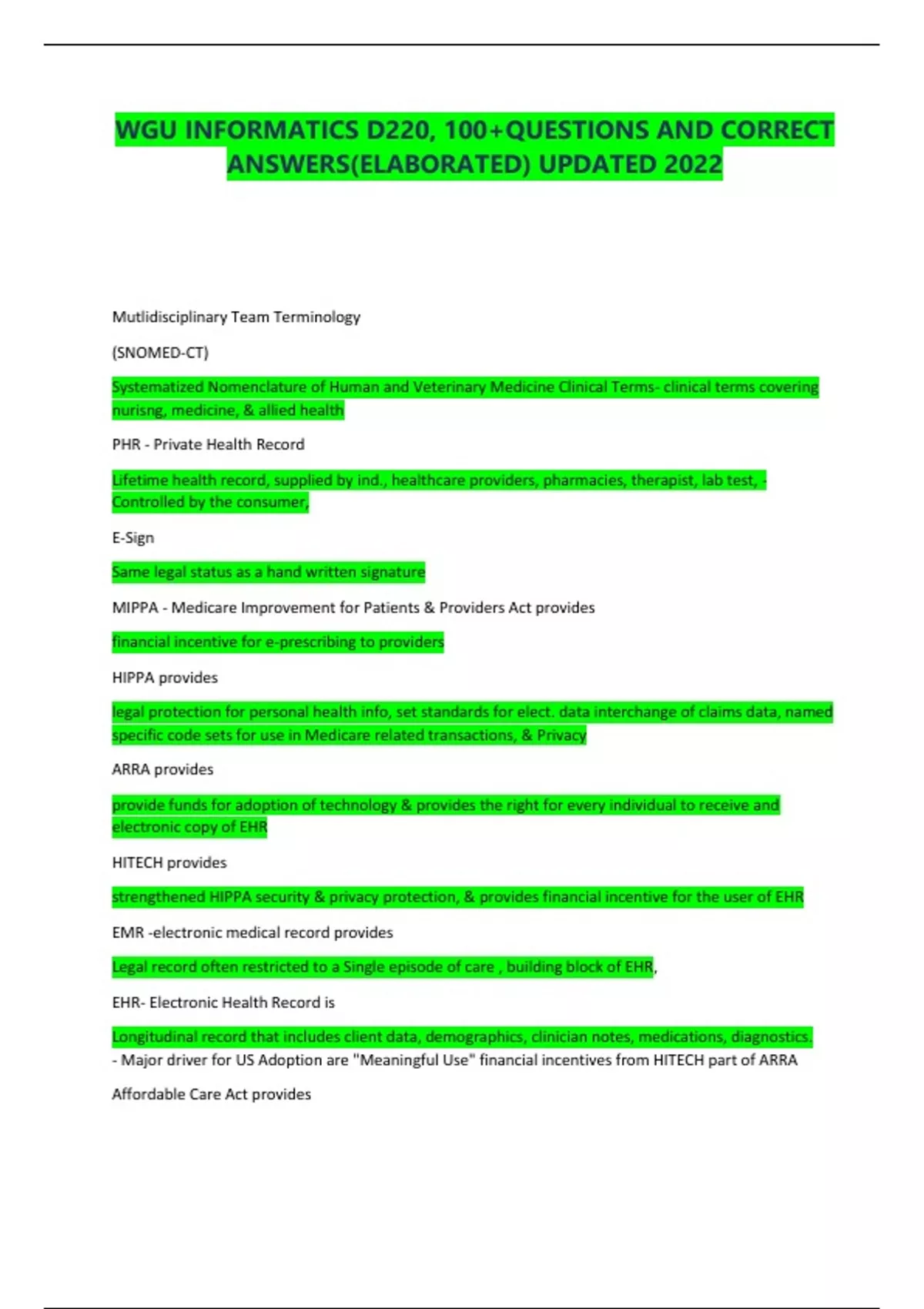 WGU INFORMATICS D220, 100+QUESTIONS AND CORRECT ANSWERS(ELABORATED) UPDATED 2022
