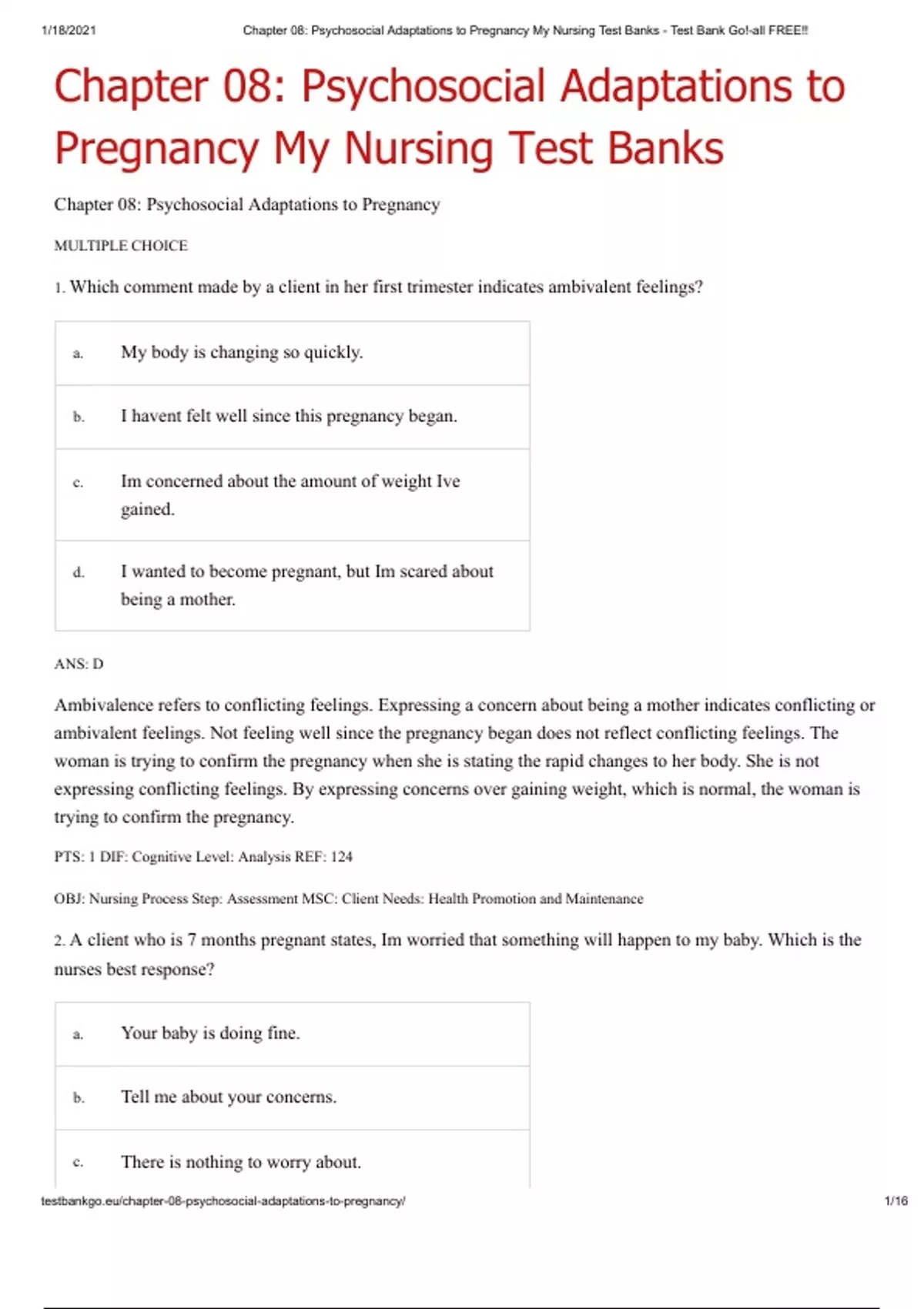 Chapter 08: Psychosocial Adaptations to Pregnancy My Nursing Test Banks