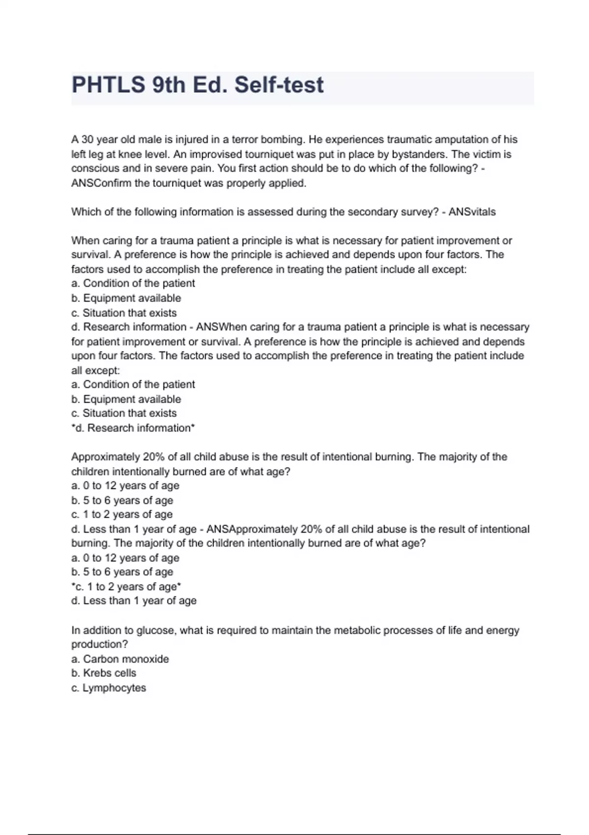 d. Research information - ANSWhen caring for a trauma patient a principle is what is necessary