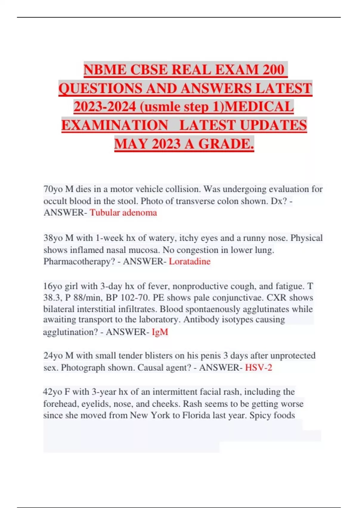 NBME CBSE REAL EXAM 200 QUESTIONS AND VERIFIED ANSWERS (usmle step 1)MEDICAL EXAMINATION LATEST 2023 |A GRADE