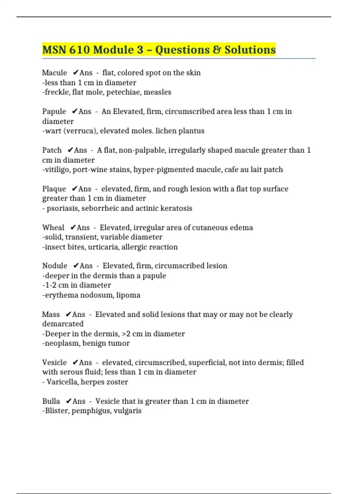 MSN 610 Module 3 – Questions & Solutions
