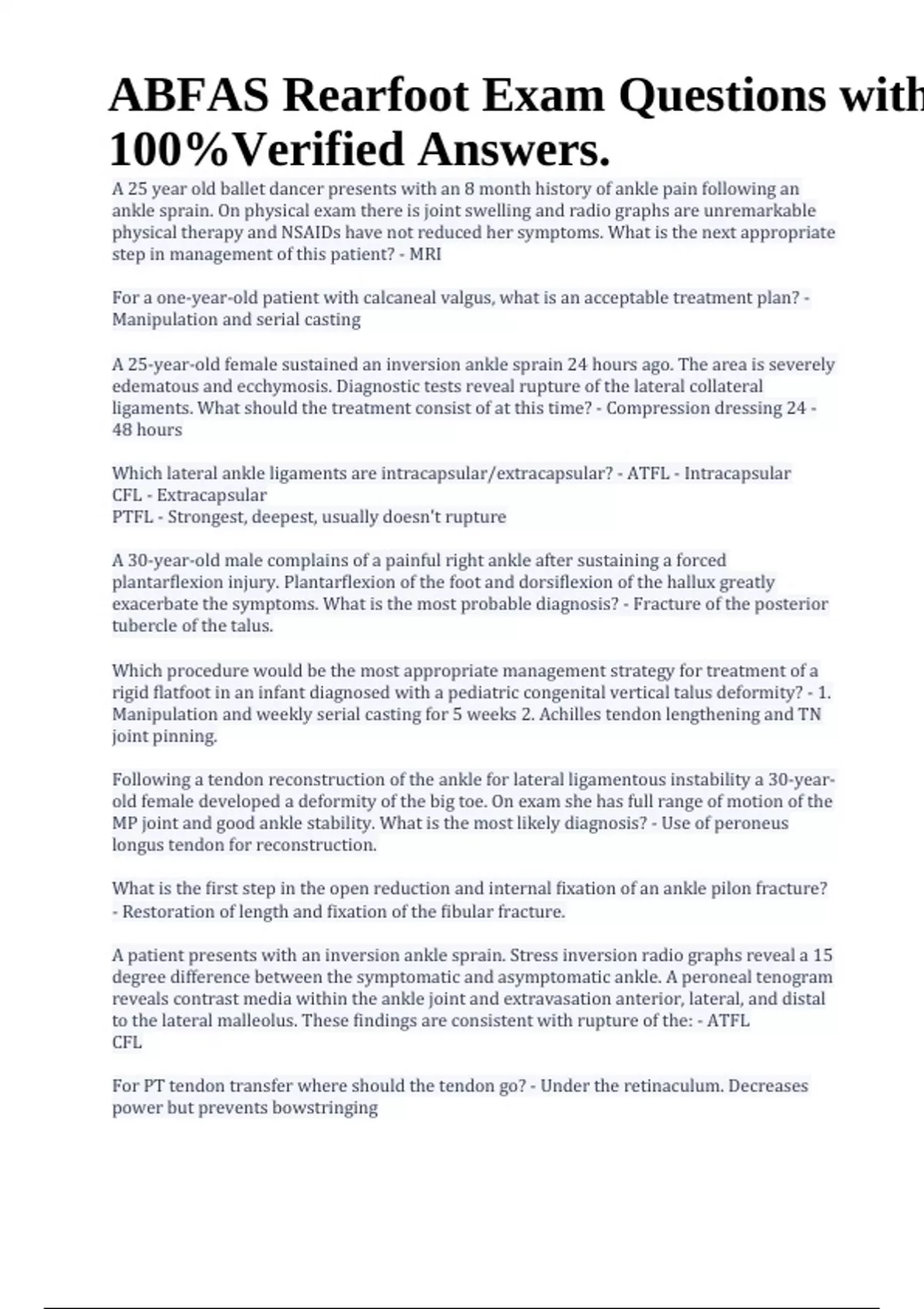 ABFAS Rearfoot Exam Questions with 100%Verified Answers.