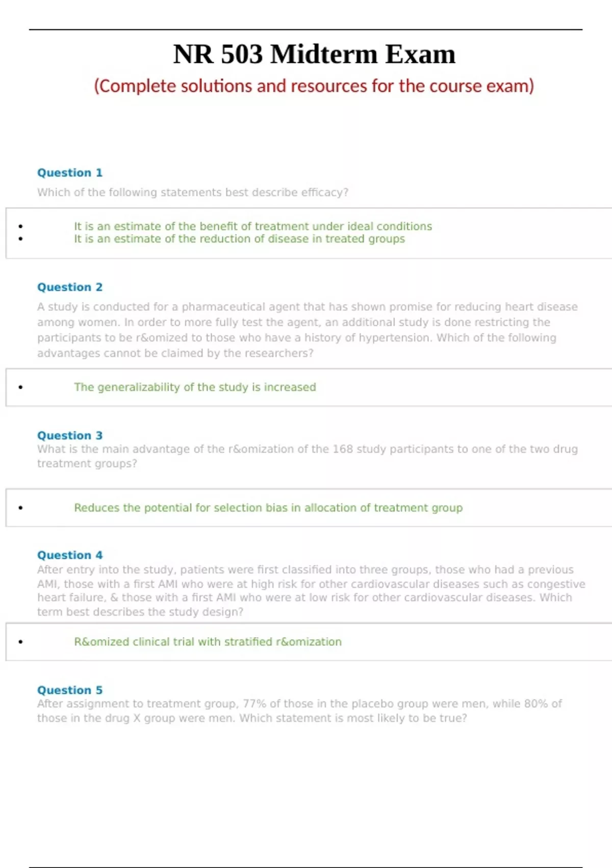 Exam of 17 pages for the course NR 503 at NR 503 (NR 503 Midterm Exam)