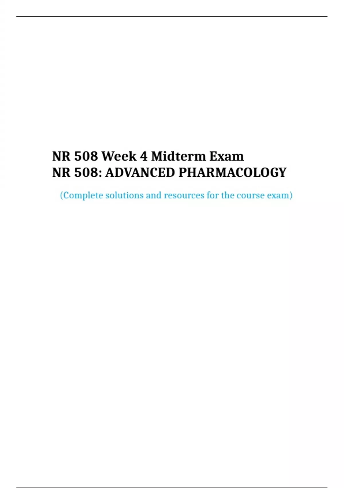 NR 508 Week 4 Midterm Exam NR 508: ADVANCED PHARMACOLOGY