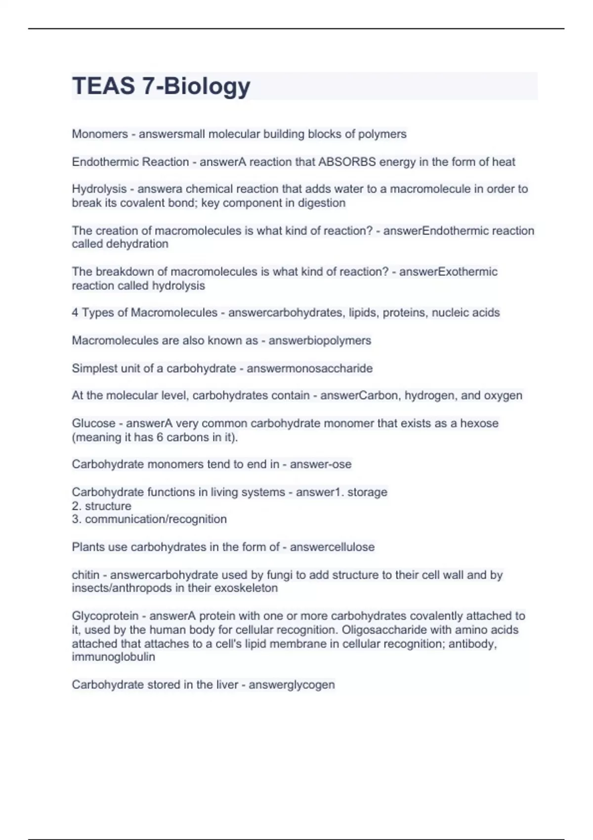 Exam of 6 pages for the course teas 7 at teas 7 (TEAS 7-Biology)
